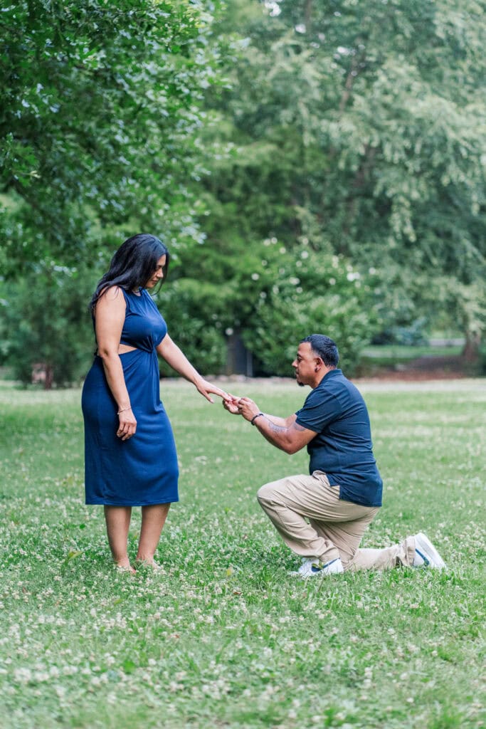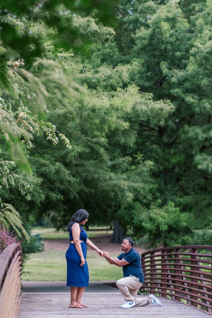 Zaida and Julio got engaged in St. Augustine Florida in April. Since their engagement was a sweet, private moment that they shared, Julio and Zaida wanted a few photos of Julio recreating his proposal. I was more than happy to capture that for them! The gardens has so many gorgeous spots to chose from, so we decided to photograph a few! Julio dropped to one knee in the beautiful field as well as the rustic bridge.