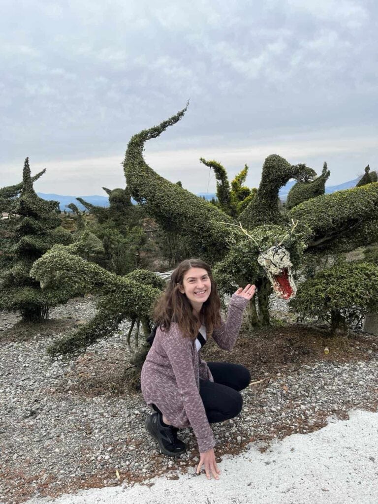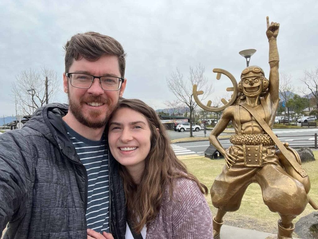 The one tour that we booked for our entire trip was a guided bike tour around Mt. Aso in Kumamoto. Mt. Aso is the largest active volcano in Japan and one of the largest in the world. Our tour guide provided us with Ebikes and we made our way from the bottom to the Mt. Aso Visitor Center. I haven’t ridden a bike in years, so I will not lie, I found our ride up to be quite challenging, but it was definitely worth it to see this amazing volcano! We also saw The Sniper of the Straw Hat Crew at our meeting point!
