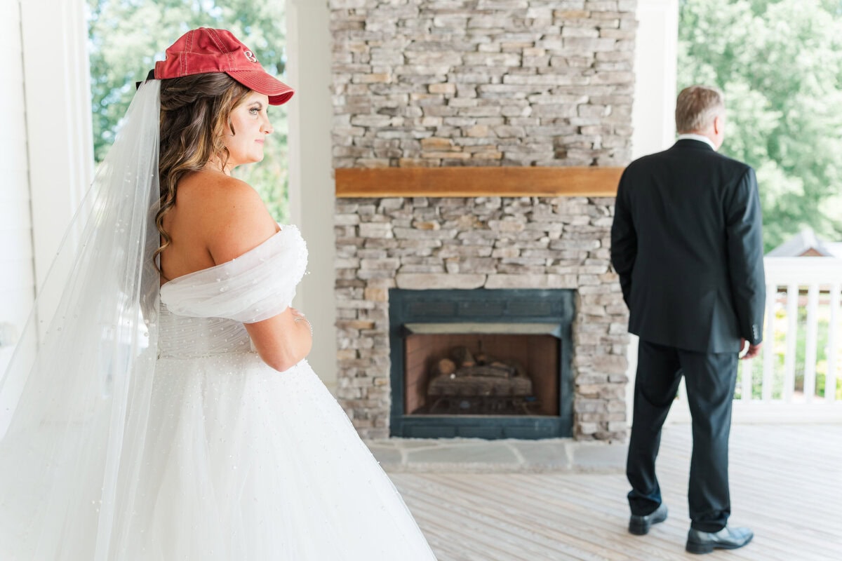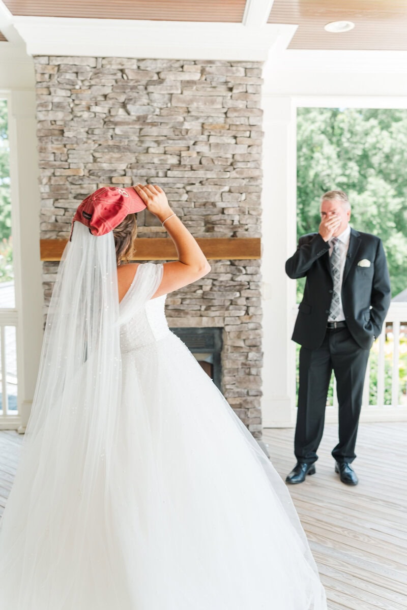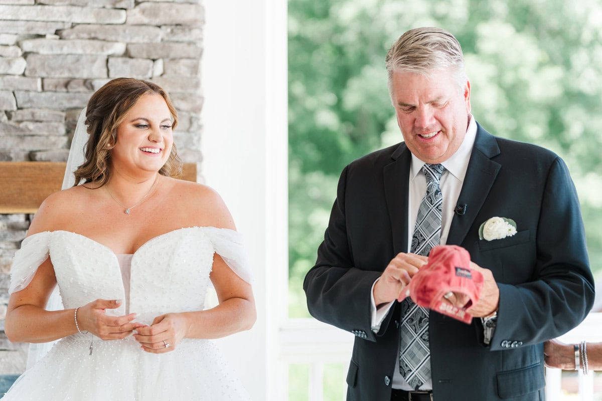 Kelly’s first look with her dad was really sweet! She wore a red baseball hat that her father had bought on the day she was born. He was so surprised to see her wearing it when she turned around! He didn’t even know that she had kept it all these years. His emotional reaction made for some truly unforgettable photos and a really sweet moment for them both.