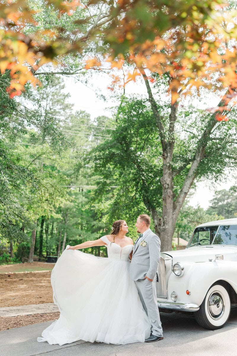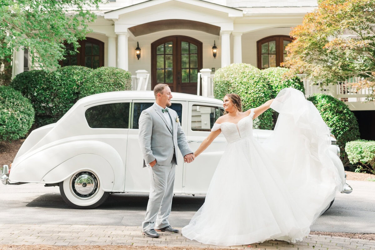 After their church ceremony, Kelly and Matt were surprised by a luxurious Rolls Royce, courtesy of Kelly’s parents. It was such a classy touch and made their getaway from the church extra special. The car followed us all the way to their reception venue, so we were able to grab some amazing photos of them with the car and their beautiful venue in the background!