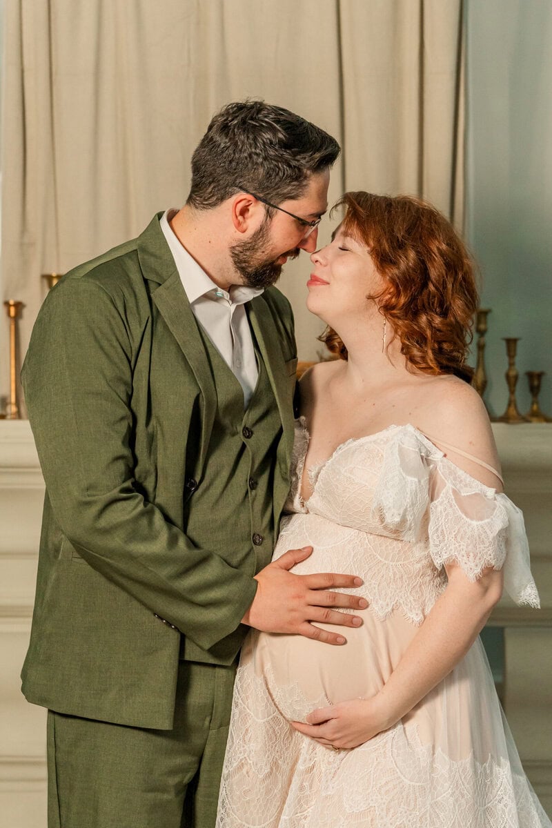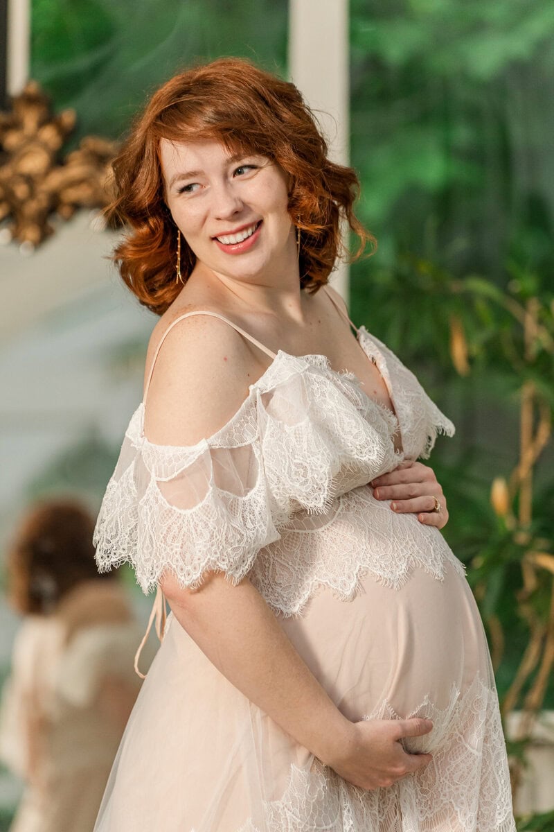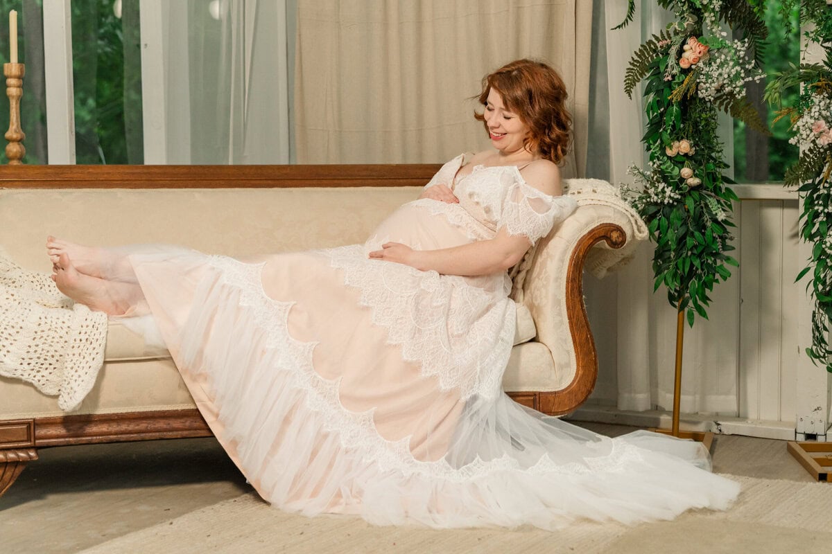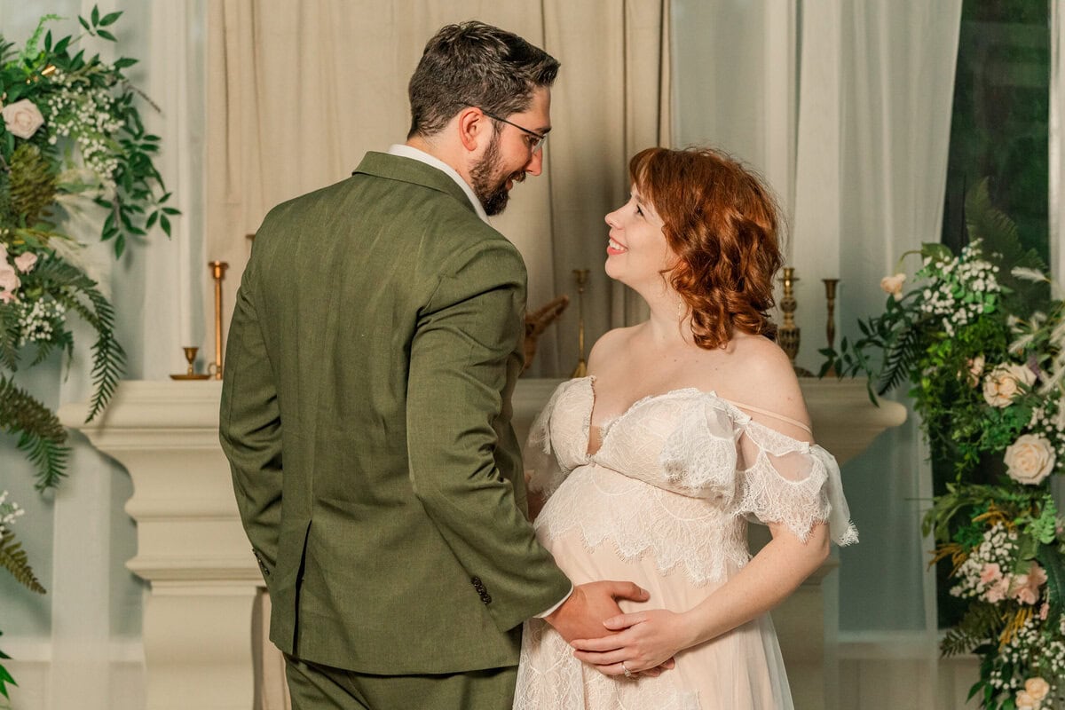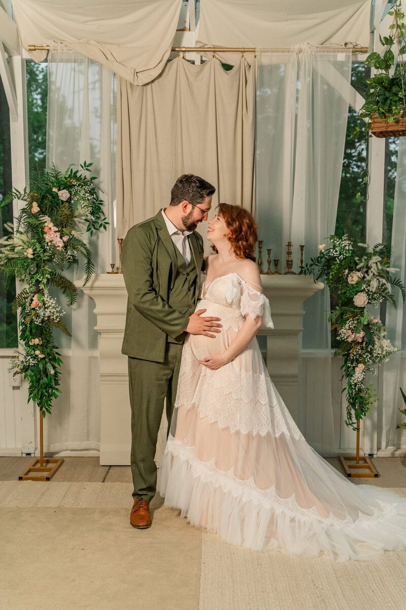 This session felt like a celebration—not just of a new life, but of friendship, beauty, and adaptability. Savvy and AJ glowed with anticipation for baby Westley, and the way they embraced the moment (rain and all) made the photos even more special. One of my favorite parts of working in spaces like The Marigold Greenhouse is how they allow for creativity, even when the weather isn’t ideal. Every detail, down to the exact yardage of fabric used in the draping, is curated to offer a stunning backdrop for intimate moments like these.