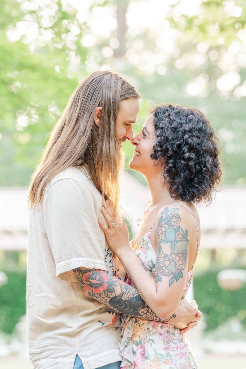 With perfect weather, golden light, and gardens in full bloom, Maria and Eric’s session was filled with laughter, romance, and meaningful moments. These two are adventurous souls (they got engaged on McAfee Knob during a 3-day hike!), so it only made sense to choose a location as connected to nature as they are.