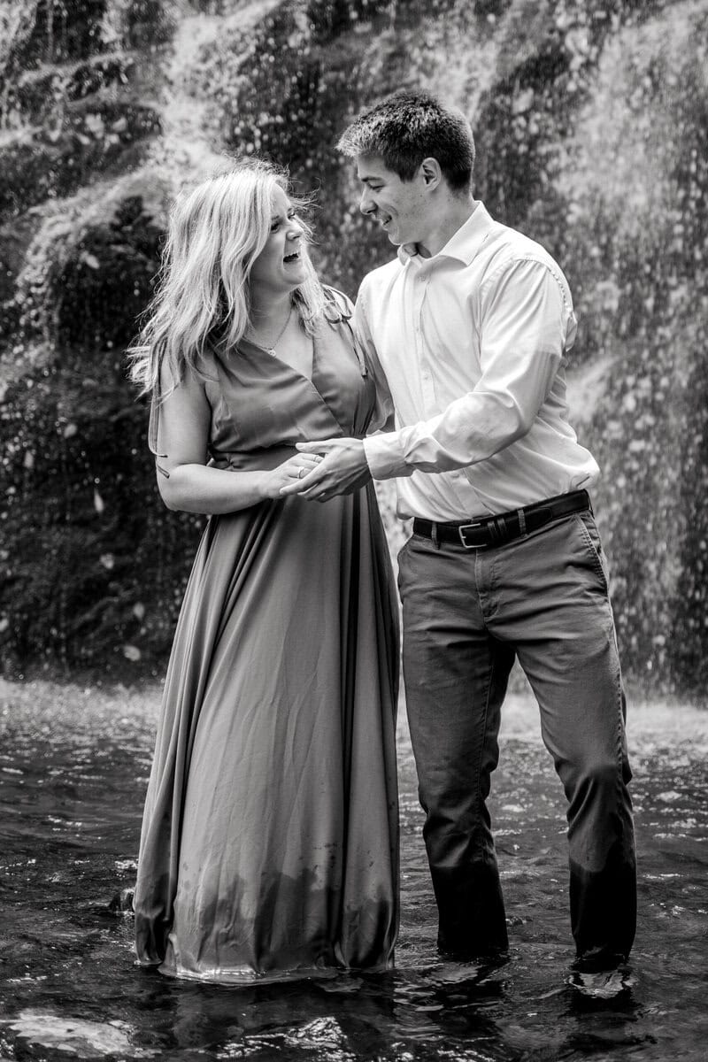 There’s a small pool at the base of the falls, and it’s become one of my signature spots for capturing romantic moments during an engagement shoot. Bailey and Elliot bravely stepped in (yep, even in the chilly water!) and their laughter and connection made for some of the most heartwarming images of their love story. It was their first time visiting this waterfall, and they told me afterward they’d never had so much fun during a photo session.