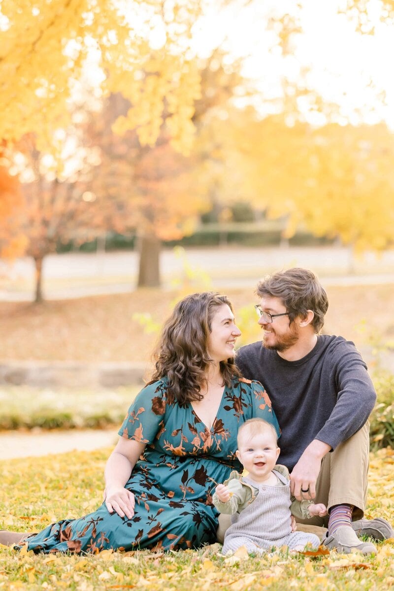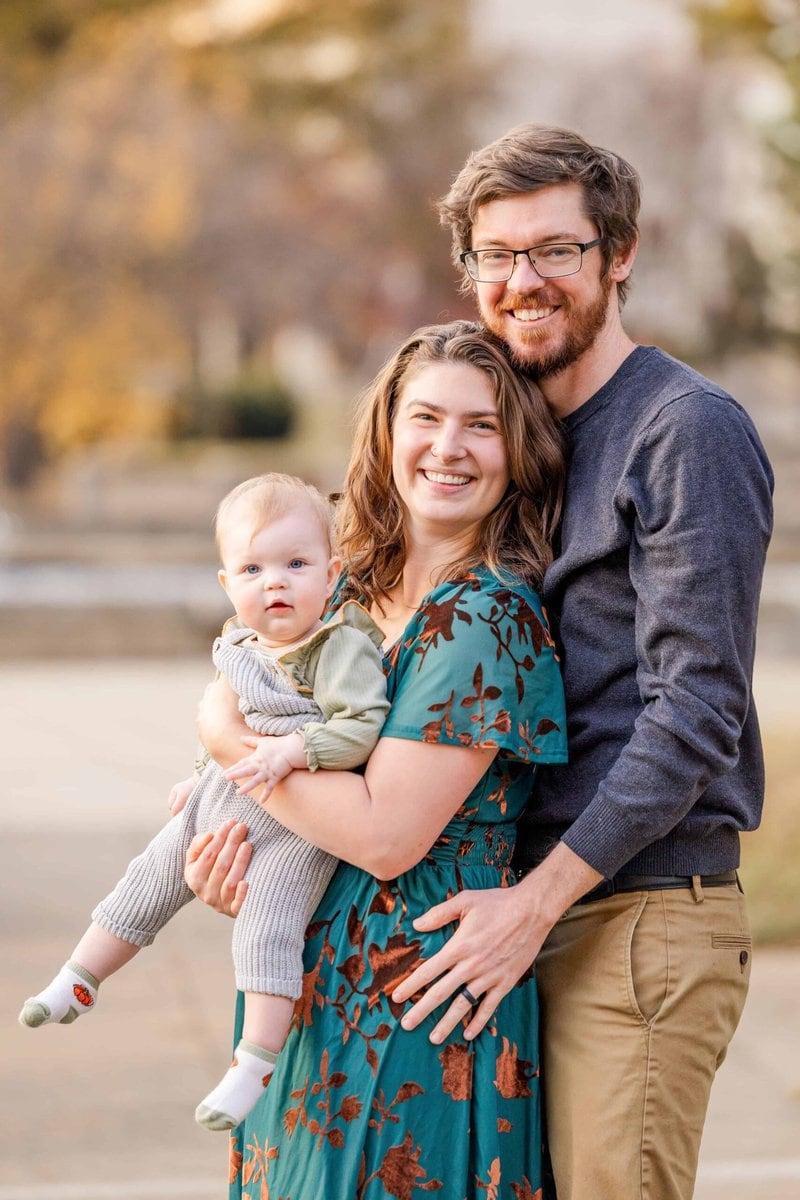 We had the opportunity to take fall photos at one of my favorite uptown locations this past week while the trees were still in fall color and I wanted to share them! The big Gingko tree in the center of Marshall Park is the tree that I plan my fall engagement sessions around every year. She truly is a stunning thing in her full fall golden color and I’m so glad we got our first fall family photos surrounded by the city I grew up in and this beautiful tree’s stunning leaves!