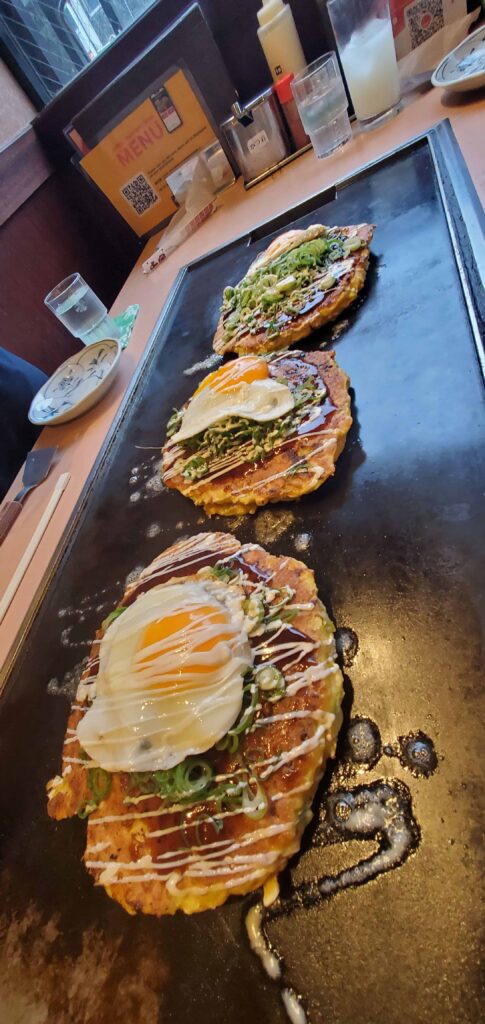 We took a quick day trip to Osaka to experience to food and to visit Osaka castle. The cloudy day made our view of the castle all the more impressive! And of course, since we LOVED okonomiyaki so much in Tokyo, we had to try Osaka’s version!