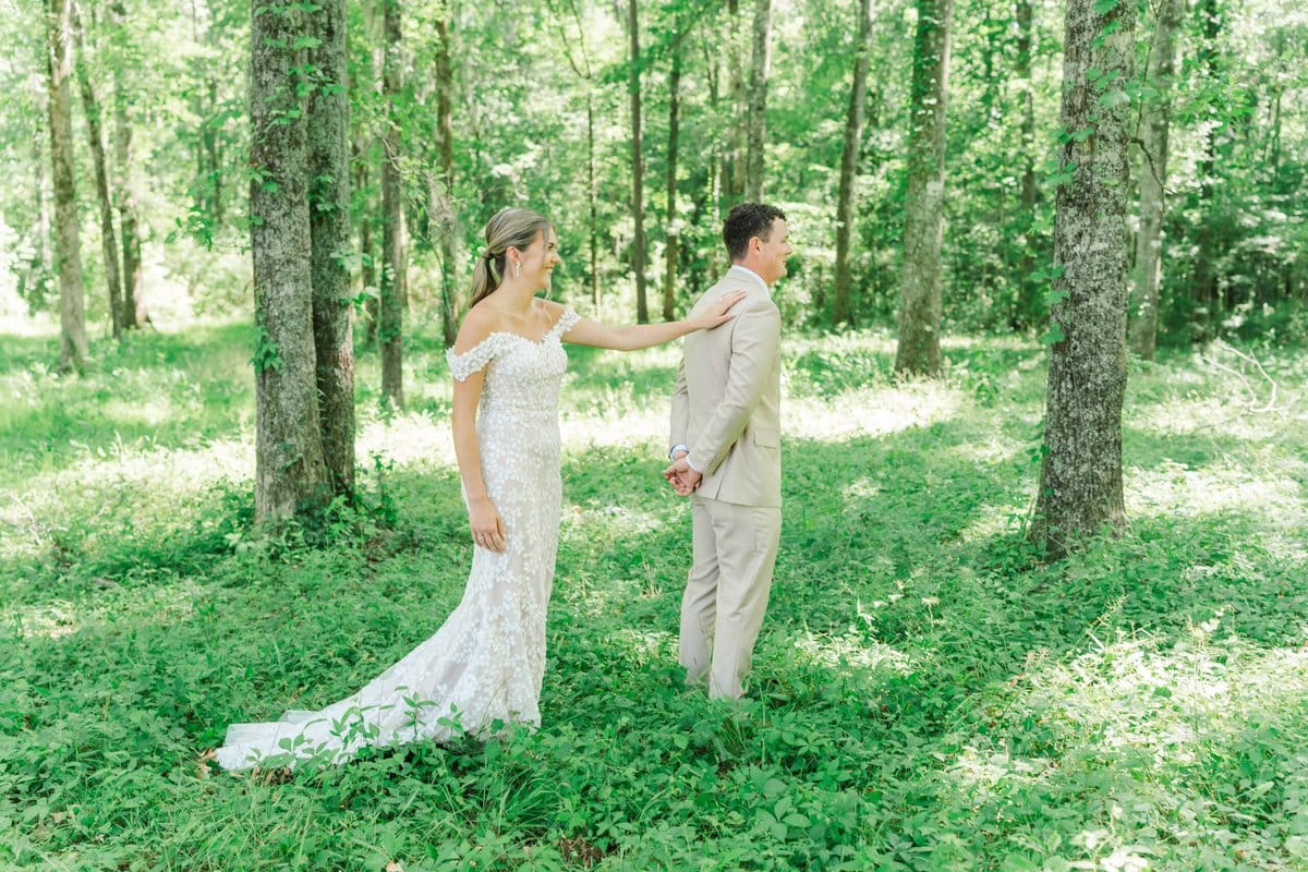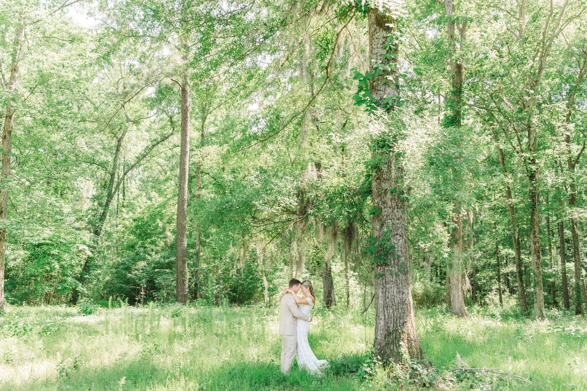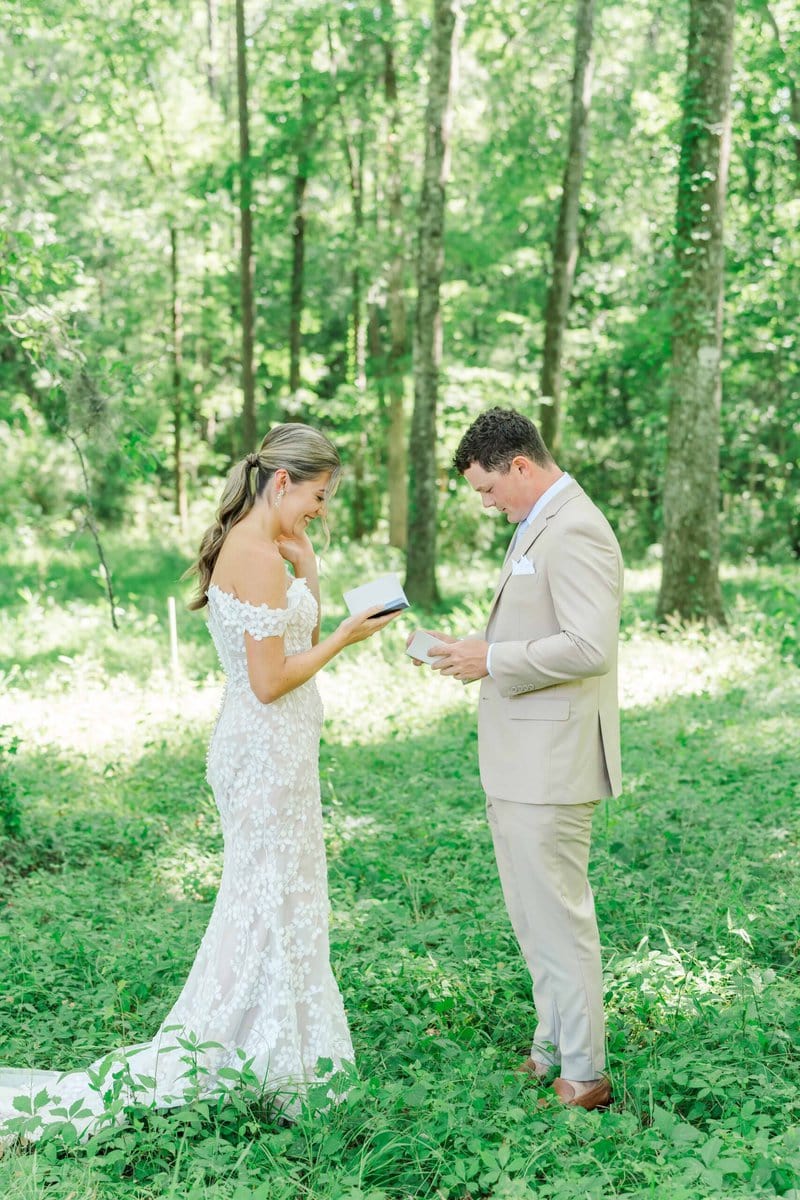 Maria and Dallon’s first look was a magical moment in the woods, surrounded by towering trees draped in Spanish moss. As they saw each other for the first time, they exchanged heartfelt vows as the sun broke through the treetops and shone around them. It was such a sweet and emotional start to their day, and I was honored to capture those raw, genuine emotions.