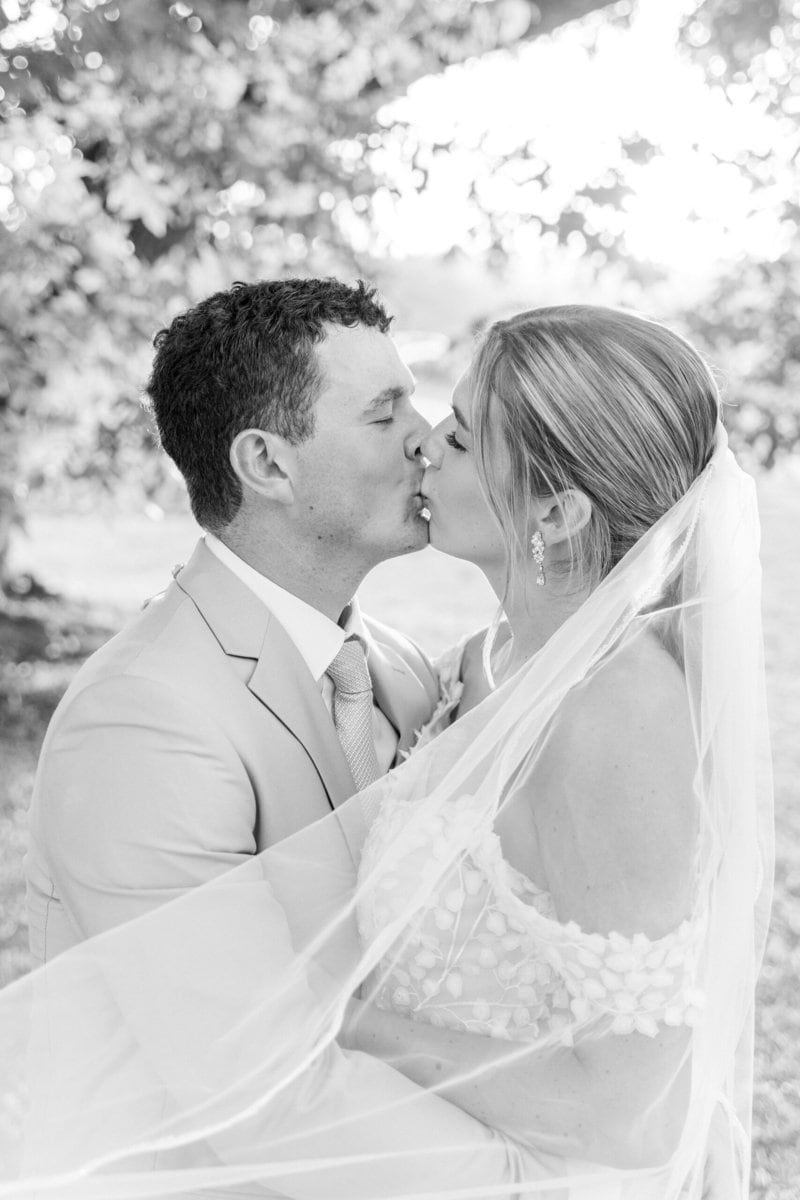The sun played a starring role in Maria and Dallon’s wedding day, casting a warm, golden glow during their sunset photos. It was absolutely perfect for capturing those romantic, dreamy moments as they enjoyed a quiet moment together amidst the beauty of the farm and the hustle of their guests having fun over at the reception tent.