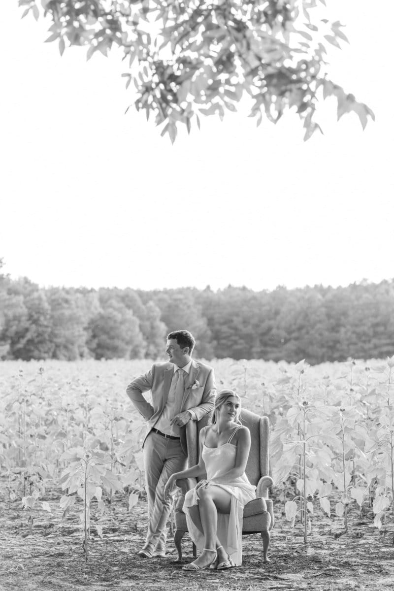 Leading up to the wedding, Dallon’s family had planted sunflowers with hopes that they would bloom in time for their big day. While not all of them bloomed as expected, luckily all I needed was a few blooming sunflowers to create some magic! The few flowers that did bloom in time added a touch of vibrant color and natural beauty to their rustic setting. It was a lovely reminder of the care that went into preparing the farm for Maria and Dallon’s big day!