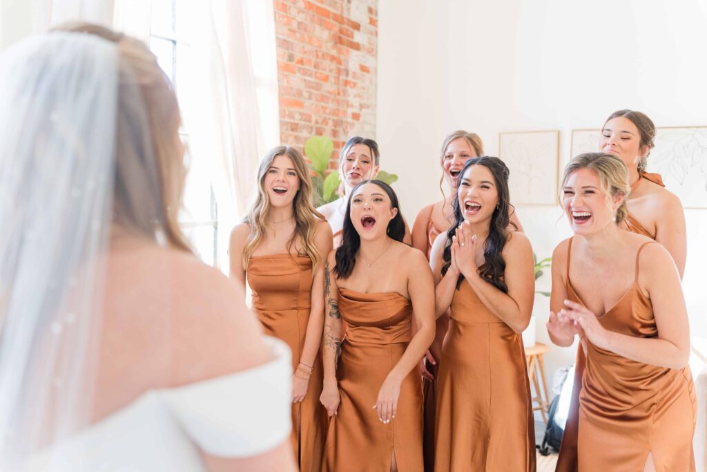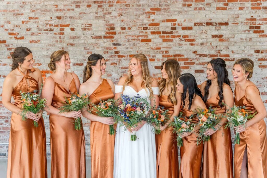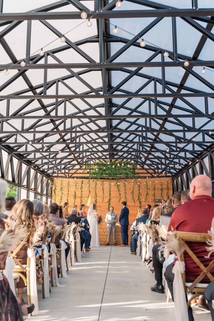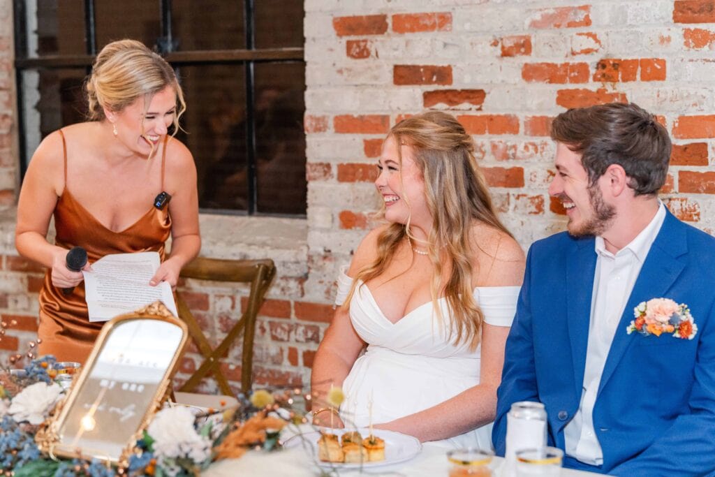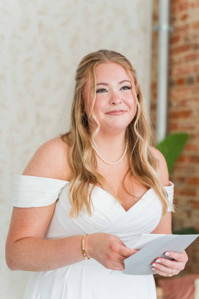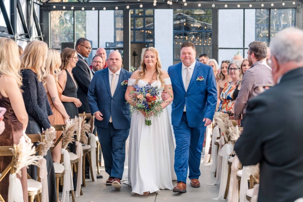 Their ceremony was in the greenhouse at The Graham Mill, and it was absolutely gorgeous. There’s something about the natural light in that space that makes everything feel so magical. Plus, the fact theat it was in a greenhouse made it nice and cozy warm, despite the fact their wedding was in the fall (love that!). Elaina had these really touching first looks—one with her bridesmaids, one with her dad, and another with her stepdad. Cue all the happy tears! One of her bridesmaids even prayed over her privately before the ceremony, which was such a beautiful moment.