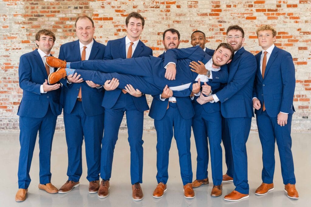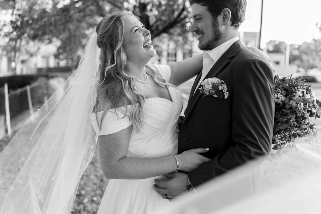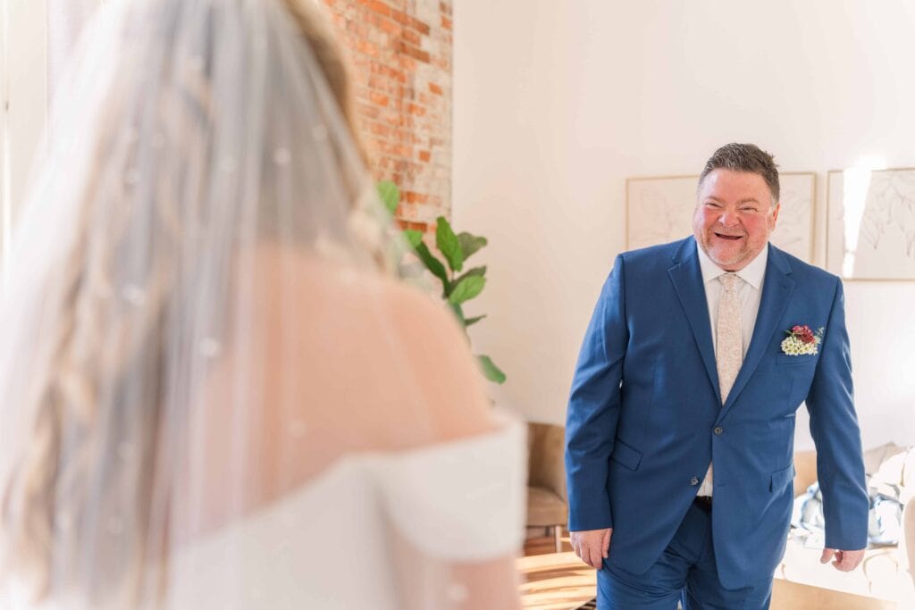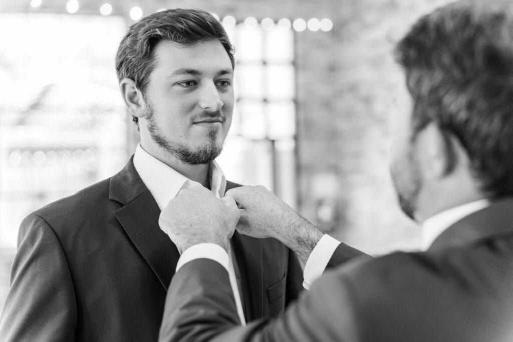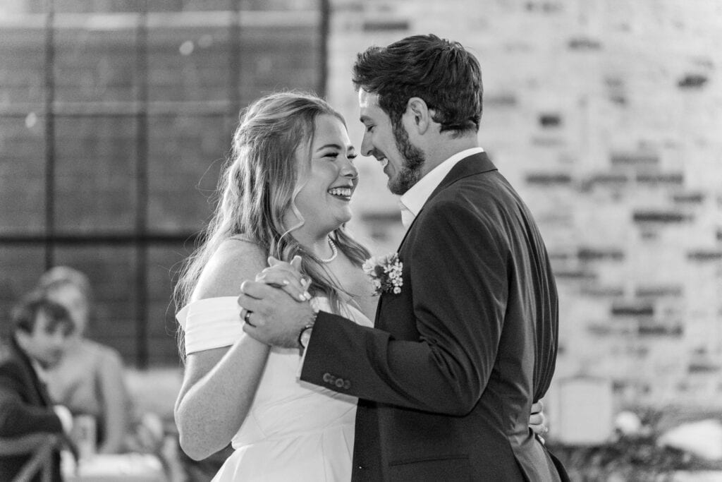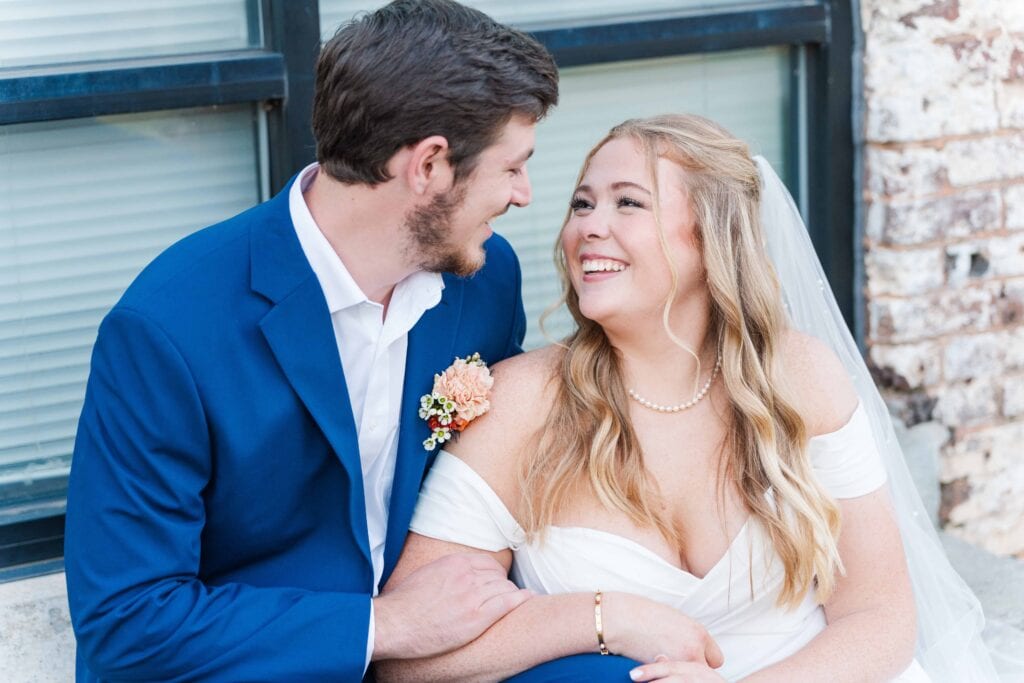 Before we get to the wedding, let me back up a bit. I actually photographed their engagement session about a year ago in Charlotte, NC, where I’m based. They wanted something with big-city vibes to match the industrial vibe of their venue, so we hit up Uptown and found all these cool spots to show off their fun and stylish personalities. I knew from that session that their wedding was going to be just as amazing—and wow, they didn’t disappoint! You can check out Nathan and Elaina’s Uptown Charlotte engagement session here!