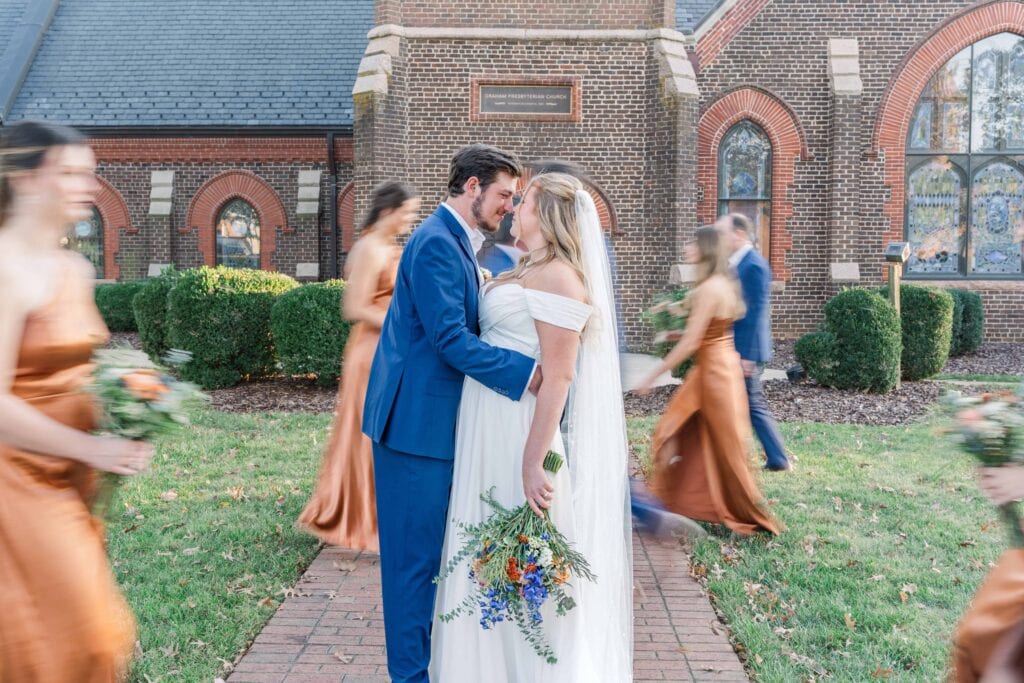 Nathan and Elaina’s wedding at The Graham Mill in Graham, NC, was such a dream! This venue is seriously one of my favorites, and Nathan and Elaina made it so uniquely theirs. From the heartfelt ceremony, to the gorgeous personal centerpieces (that Elaina made herself, might I add!) to the unforgettable reception, their day was packed with happy tears, love, and laughs. If you’re looking for inspiration for The Graham Mill weddings, their celebration had it all—sweet traditions, fun surprises, and the perfect mix of industrial charm and natural beauty.
