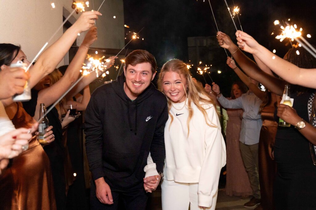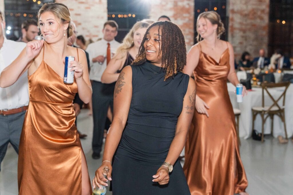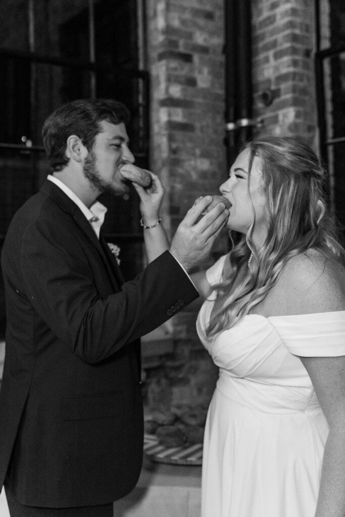 The reception was in the main building at The Graham Mill, and it was such a party! Instead of a traditional cake, they had all different kinds donuts—which is always a win in my book. But the best part? Halfway through the night, Nathan and Elaina changed into matching Nike tracksuits! Elaina rocked an all-white set, and Nathan was in all black. I’ve had couples come out in everything from a different dress and suit to pajamas, but tracksuits were a new one for me! I love the uniqueness (and the comfort) of it! Everyone loved it, and it added this playful, laid-back vibe to the rest of the night.