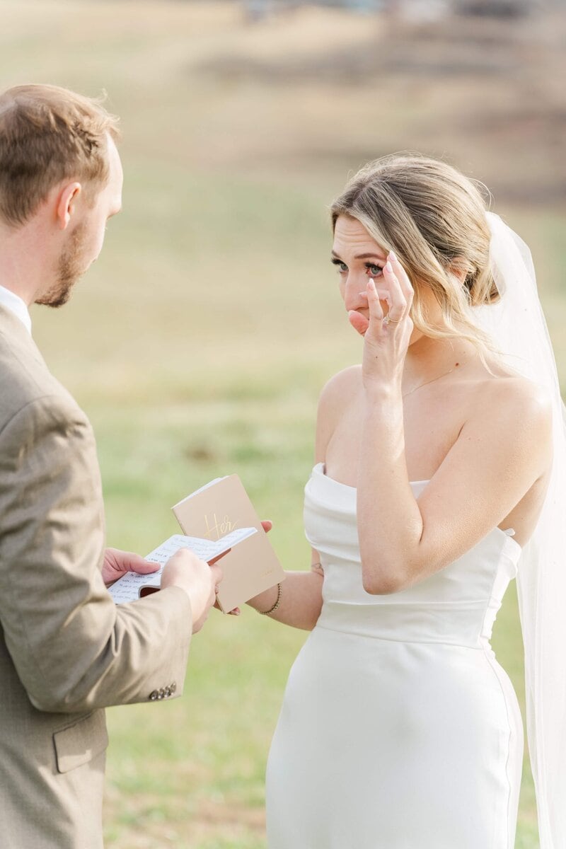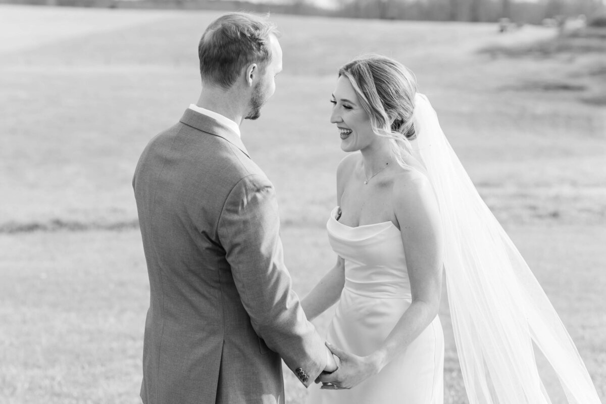 Savannah and Hunter incorporated so many personal touches that made their day unforgettable. Savannah shared a touching first look with her father in the field overlooking the beautiful foothills of NC. Later, she met Hunter in the same field for a private first look and vow reading—a moment that captured the beauty of their relationship. I absolutely love first looks. It is always so much fun for me, as a photographer, to capture all the love, smiles, and happy tears that come from this intimate moment. Savannah and Hunter were so excited to see each other for the first time that more than one or two happy tears were shed! And I am so grateful that we had easy access to a picture perfect location to capture this sweet moment!