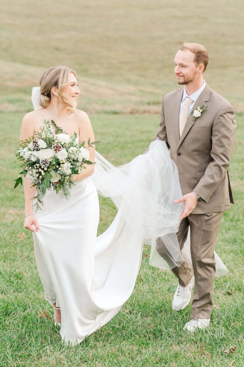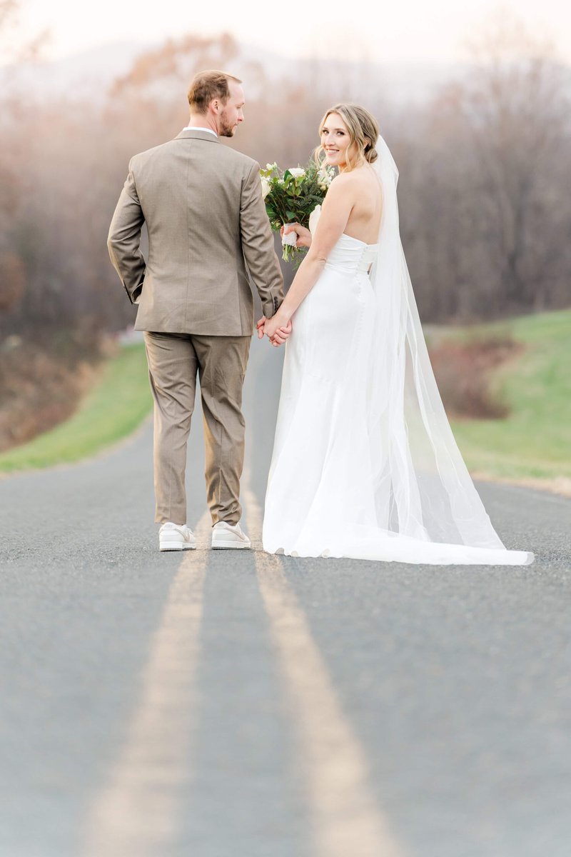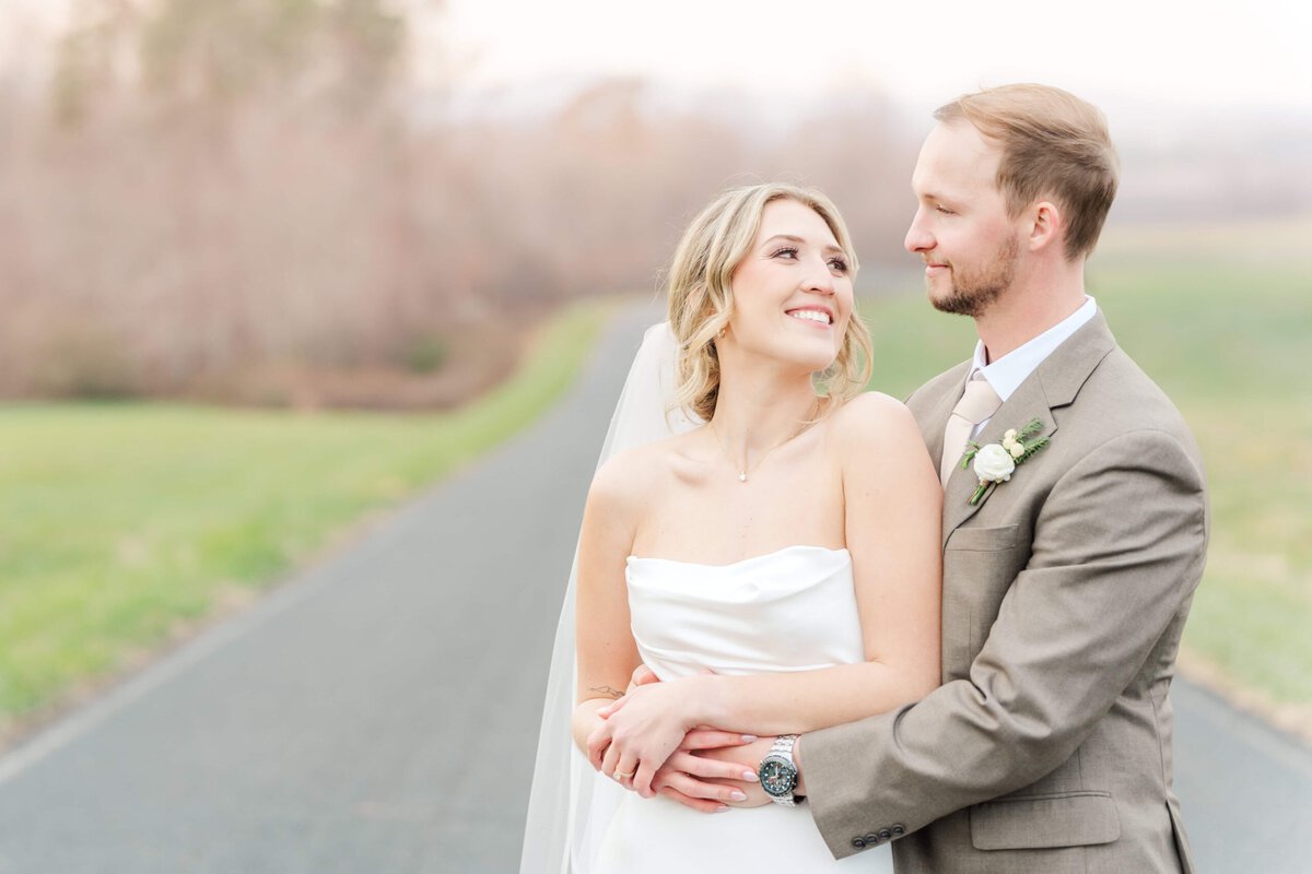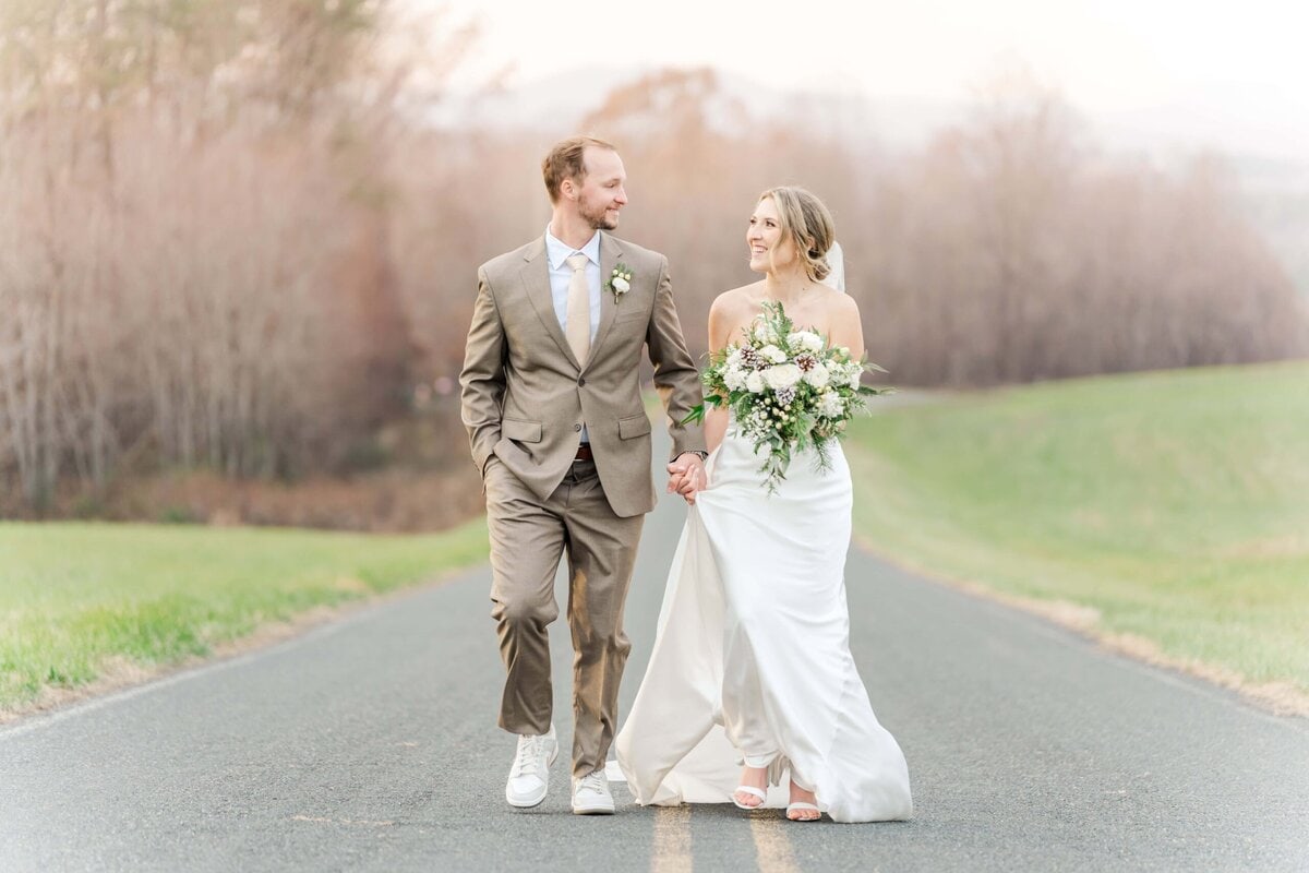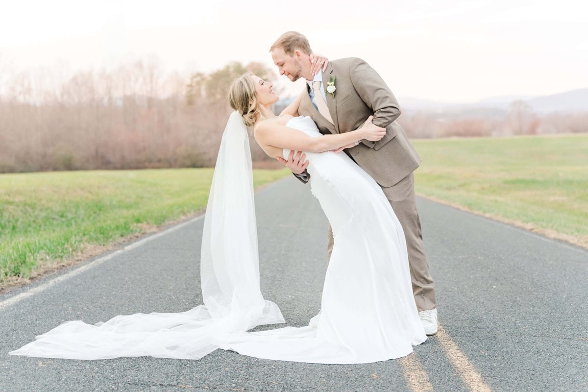 Although the ceremony was indoors, we braved the chilly temperatures and ventured outside for sunset photos just down the road. The setting winter sun cast a soft glow over the mountains, creating the perfect romantic backdrop for their wedding! We had the mountains behind us and gorgeous fields on either side, making it a perfect picture location for their romantic couples photos. Because it was so chilly, we didn’t spend too long outside, but we didn’t need to because Savannah and Hunter were absolute naturals for photos! I love it when couples choose to do an engagement session, because it always helps them feel much more relaxed in front of the camera for their wedding day.