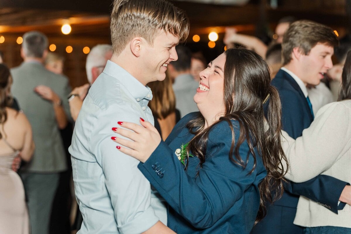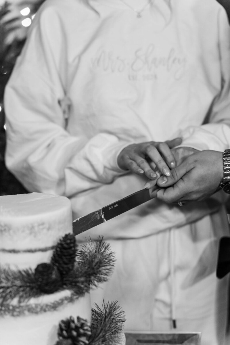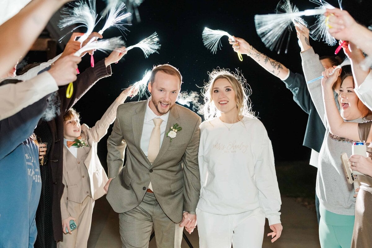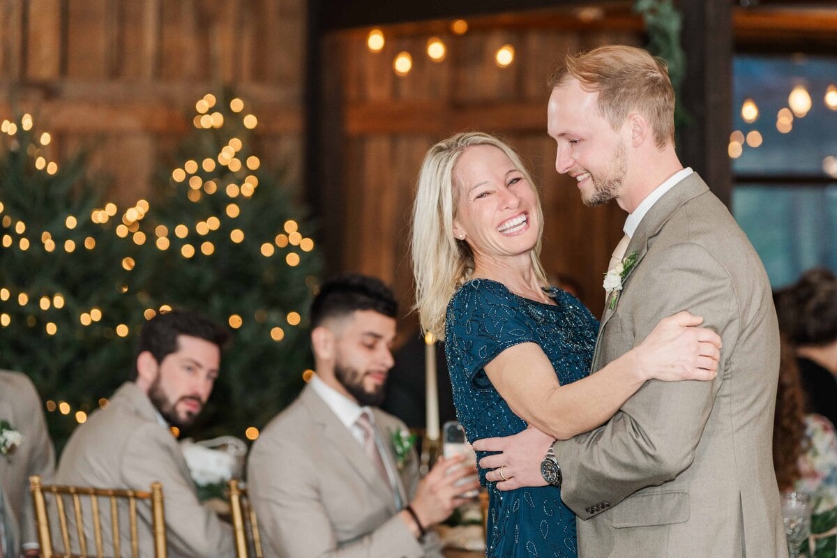 The staff quickly flipped the room after the ceremony, setting up additional tables and opening up a space for the dance floor. The reception carried on the theme of subtle holiday elegance, with warm lighting and tasteful decor setting the mood for the evening. Hunter’s dance with his mom, and then his stepmom, was such a sweet moment that really showed the love and strong family bonds they were celebrating that day. Their guests had SO much fun dancing the night away on the dancefloor and when it was time for their big exit, Savannah and Hunter’s controlled LED light exit was so much fun! It was such a modern and unique way to wrap up the night and send Savannah and Hunter off into their new life together!