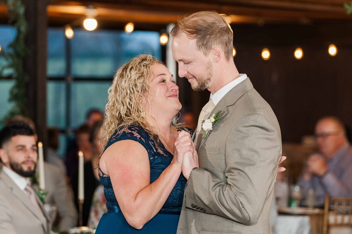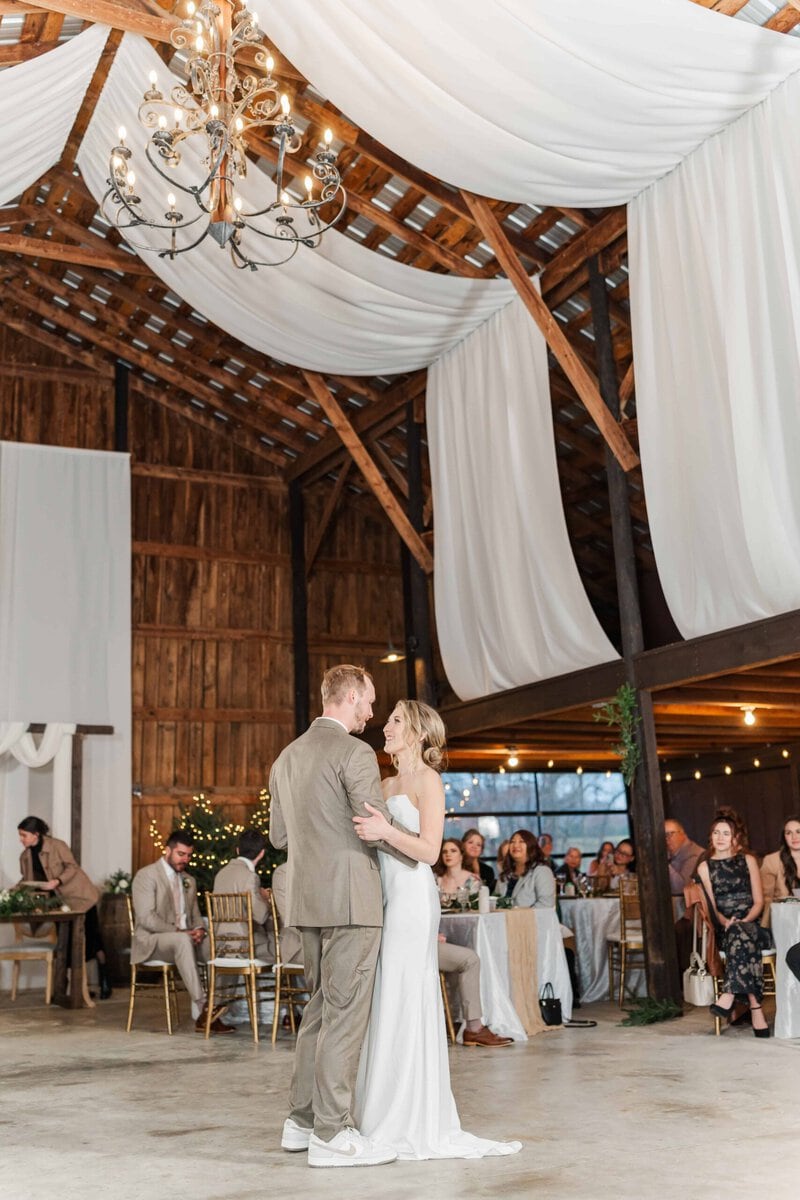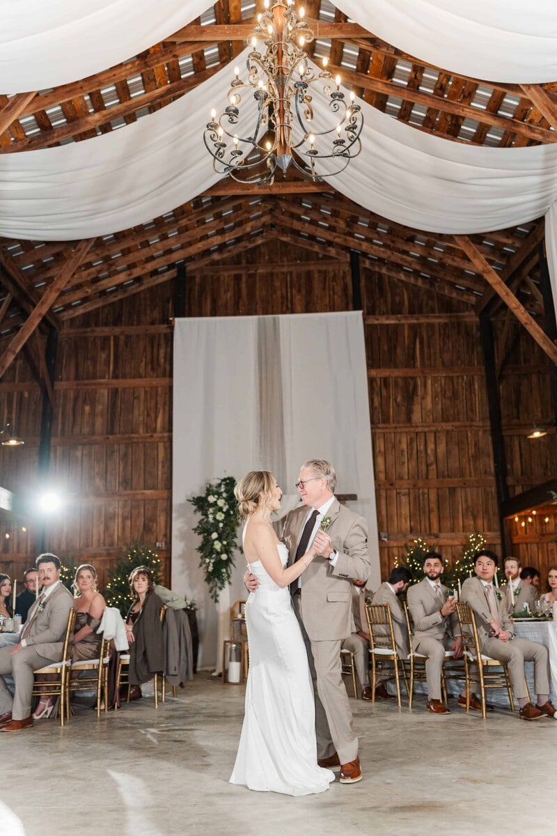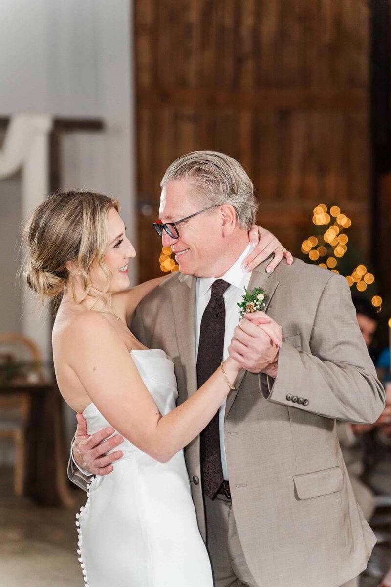 The staff quickly flipped the room after the ceremony, setting up additional tables and opening up a space for the dance floor. The reception carried on the theme of subtle holiday elegance, with warm lighting and tasteful decor setting the mood for the evening. Hunter’s dance with his mom, and then his stepmom, was such a sweet moment that really showed the love and strong family bonds they were celebrating that day. Their guests had SO much fun dancing the night away on the dancefloor and when it was time for their big exit, Savannah and Hunter’s controlled LED light exit was so much fun! It was such a modern and unique way to wrap up the night and send Savannah and Hunter off into their new life together!