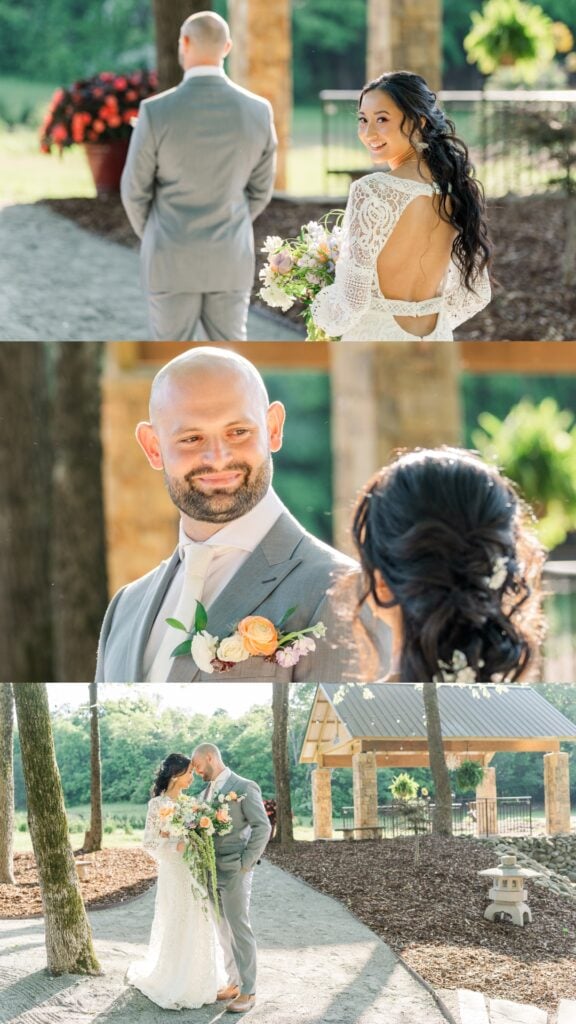 By scheduling a first look, you ensure there’s plenty of time for couples’ portraits before the ceremony. This is especially helpful if your timeline is tight or if unpredictable weather might limit your opportunities later in the day. Think of it as an insurance policy to guarantee you get those beautiful first look photos as well as some gorgeous couples photos! Side note – even if you choose to do a first look, make sure you schedule enough time for golden hour couples portraits later in the day. Trust me, you won’t regret it!