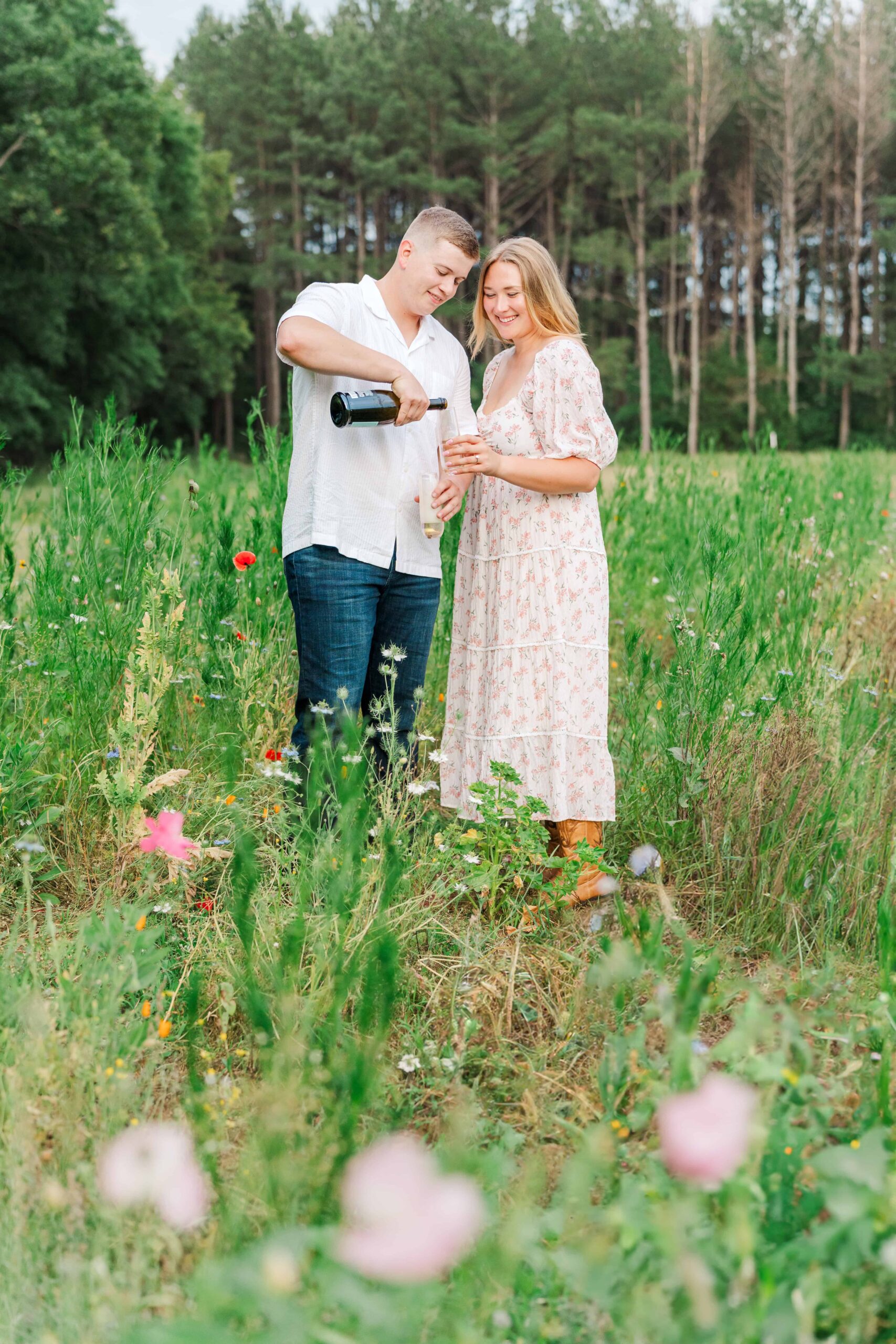 As the sun dipped below the horizon, we stayed into blue hour for a romantic finale. Grace and Jacob popped a bottle of champagne and toasted to their future together—surrounded by flowers and the sound of crickets in the evening air.