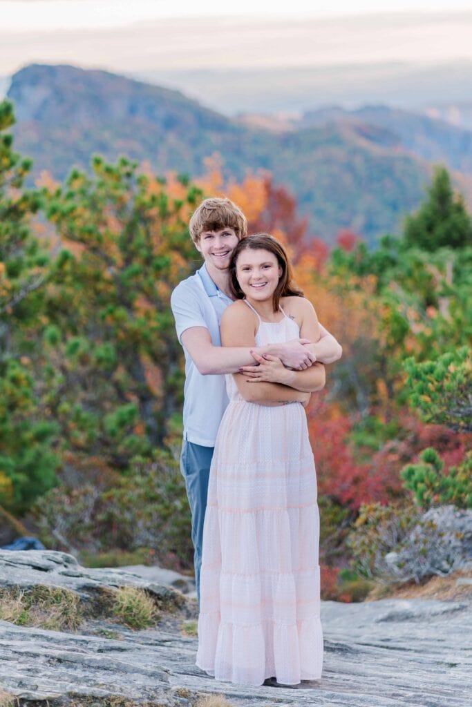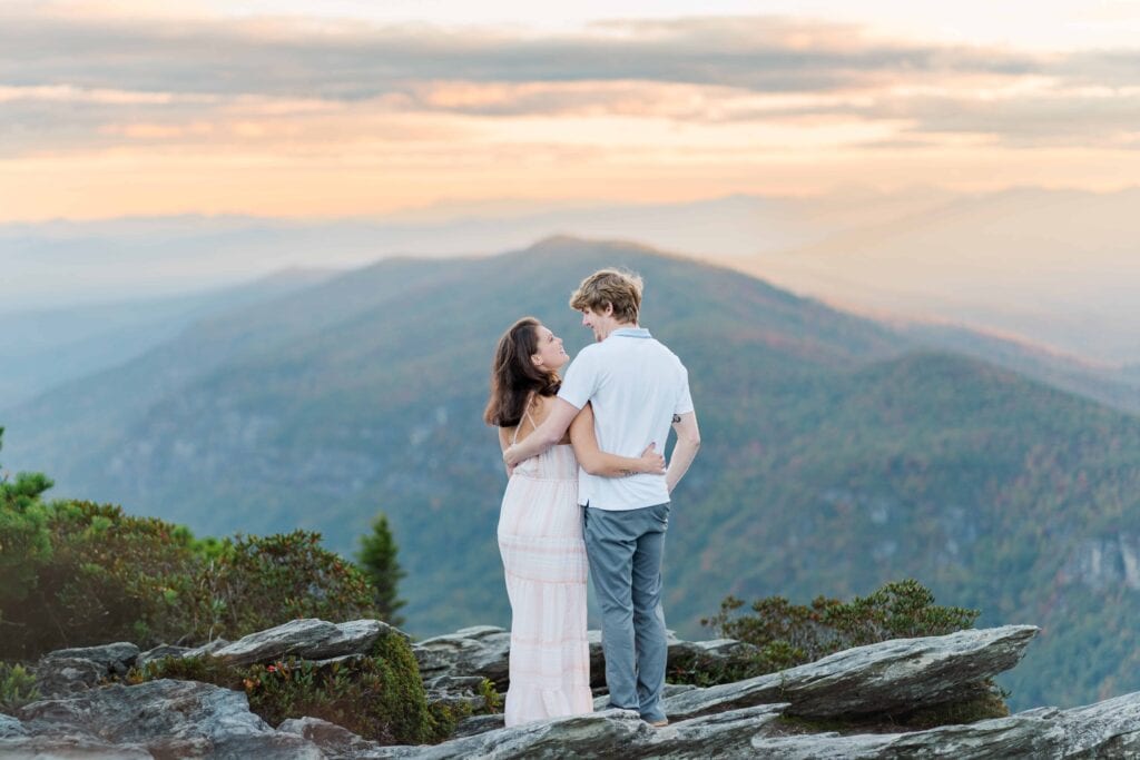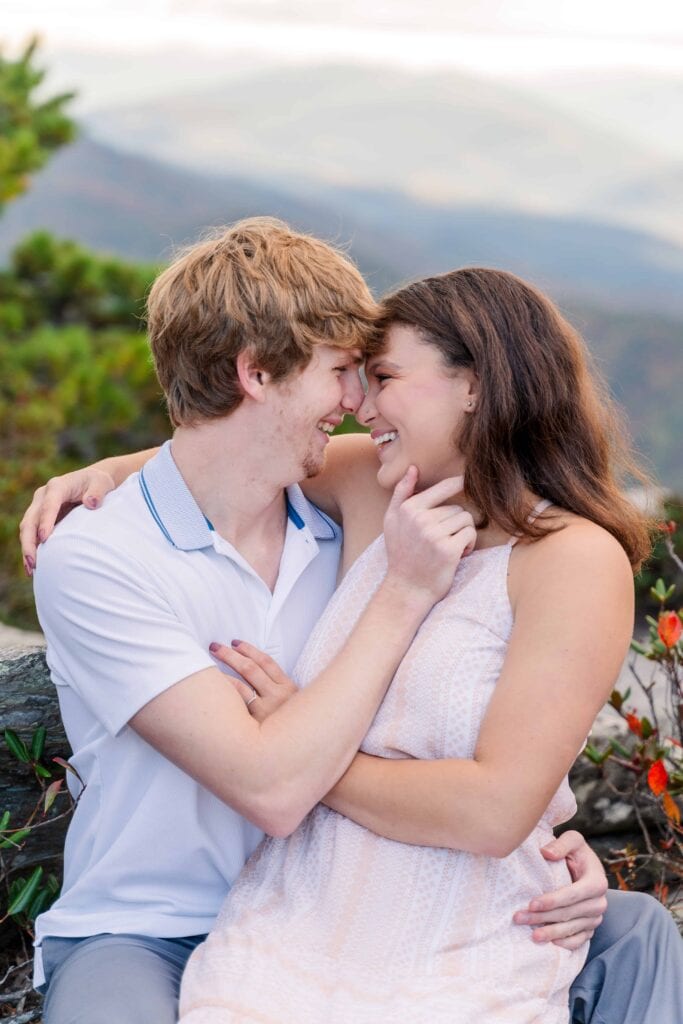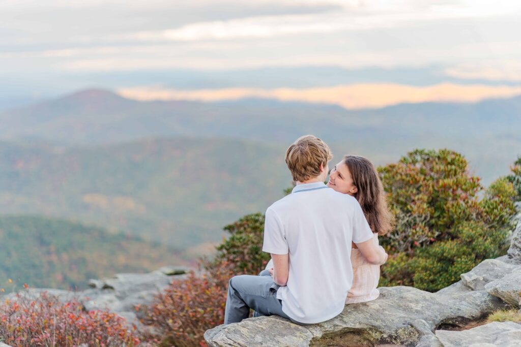 Recently, I had the joy of photographing Neika and Elijah on Hawksbill Mountain in North Carolina. They’re the kind of couple that radiates joy—best friends first, partners always. We planned an epic blue ridge mountain engagement session during peak leaf season and hiked just in time to catch golden hour turning into a show-stopping sunset, with 360-degree stunning views of the Blue Ridge Mountains.