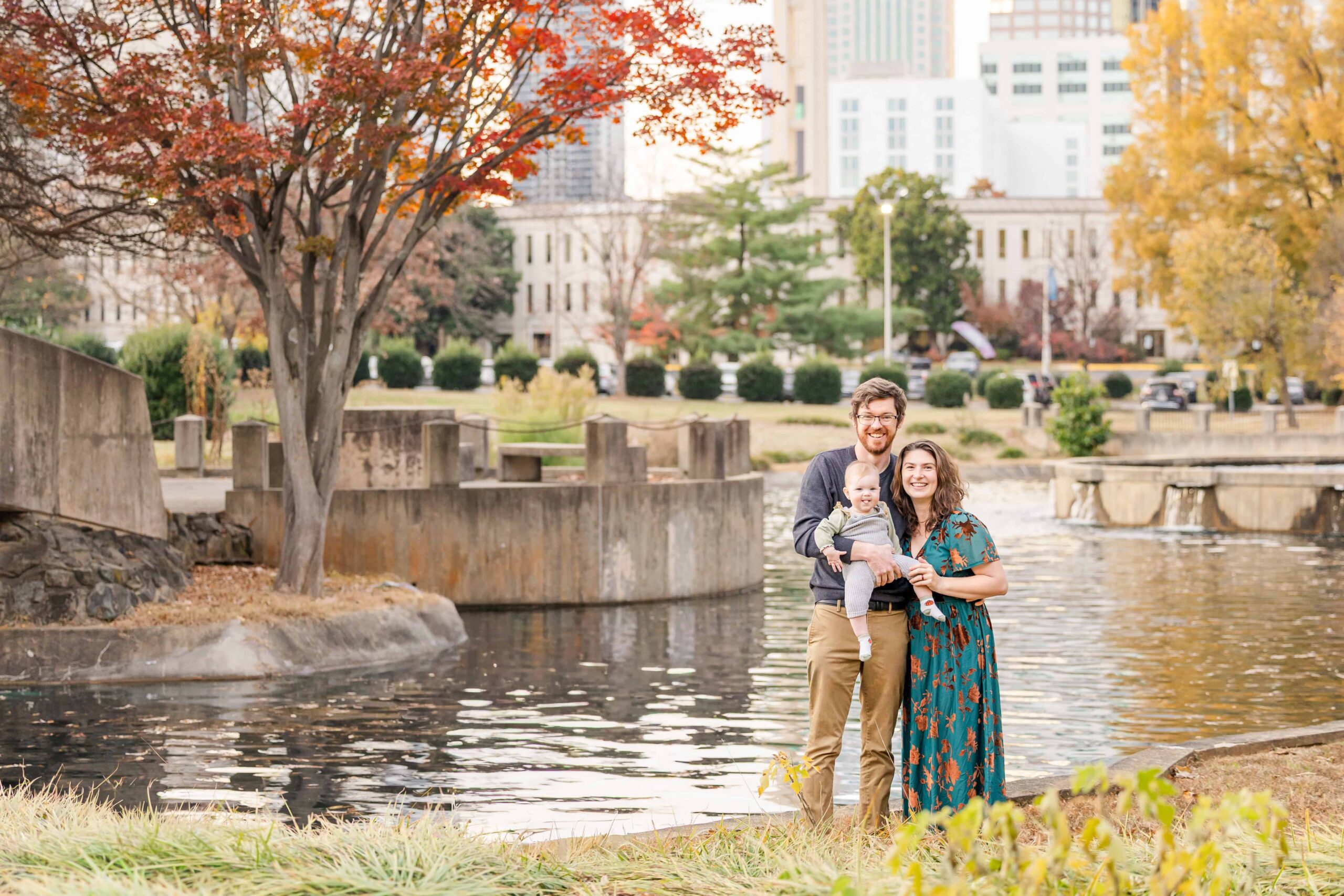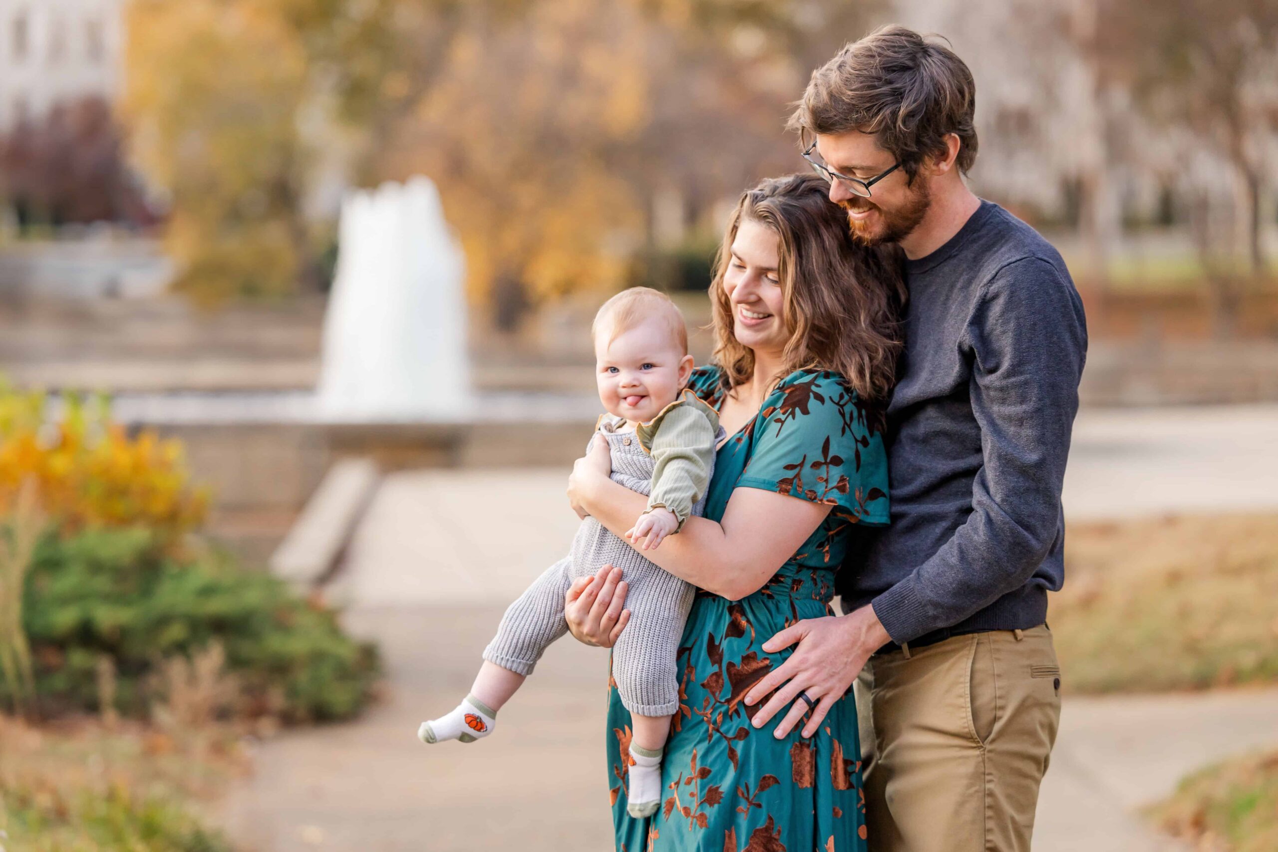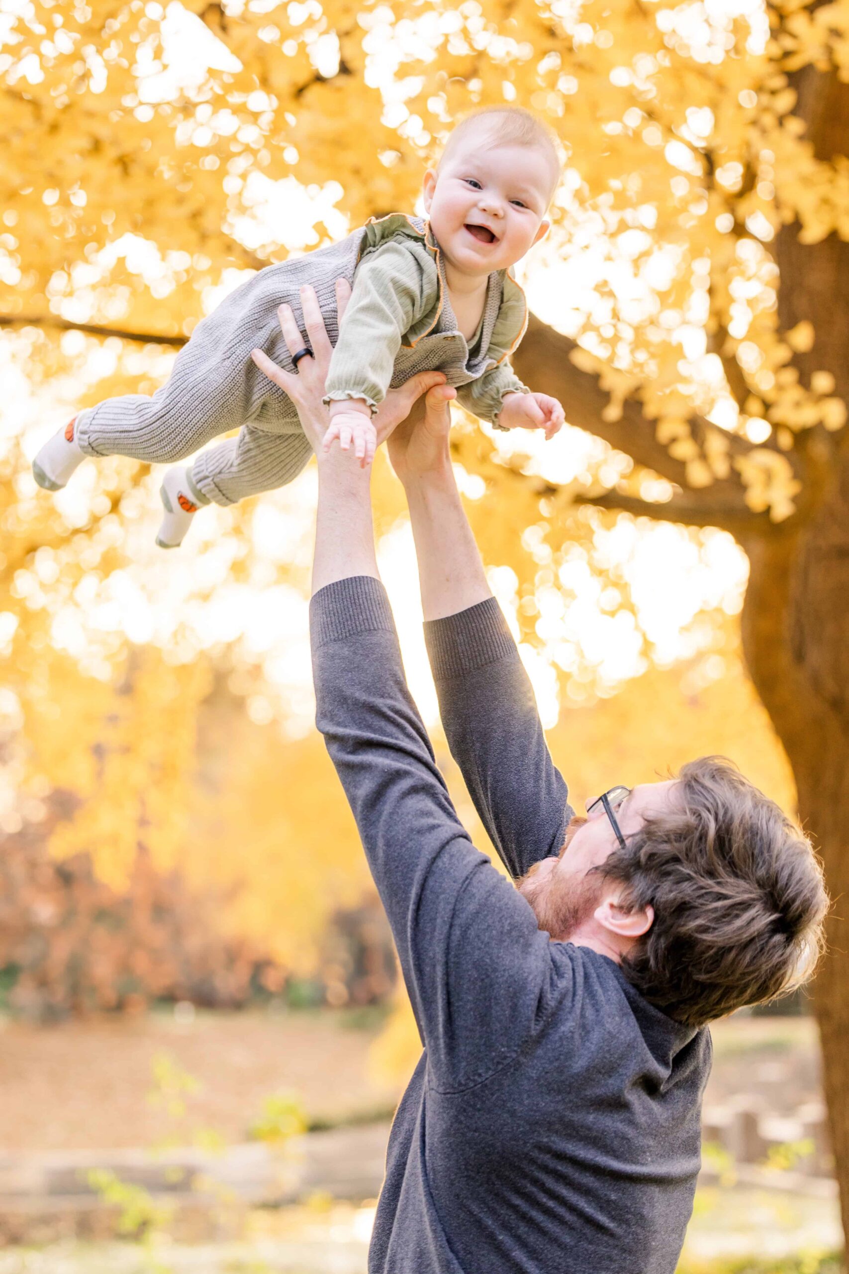 We had the opportunity to take fall photos at one of my favorite uptown locations this past week while the trees were still in fall color and I wanted to share them! The big Gingko tree in the center of Marshall Park is the tree that I plan my fall engagement sessions around every year. She truly is a stunning thing in her full fall golden color and I’m so glad we got our first fall family photos surrounded by the city I grew up in and this beautiful tree’s stunning leaves!