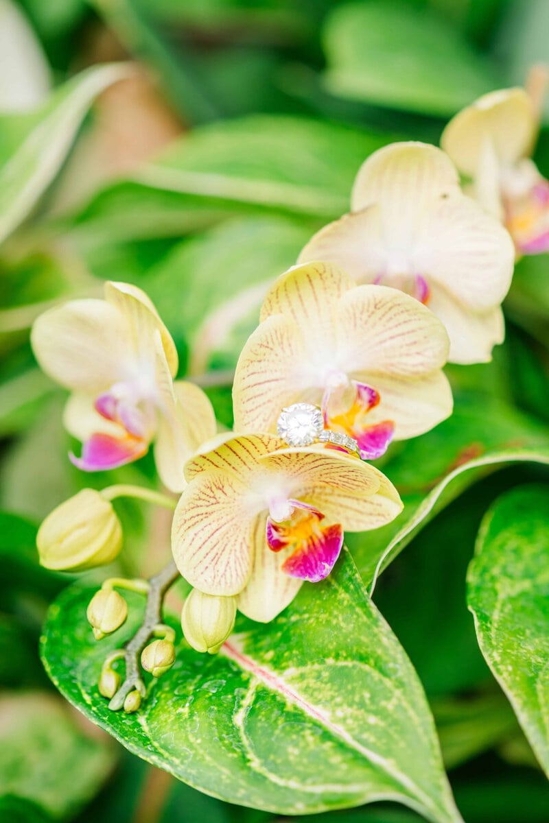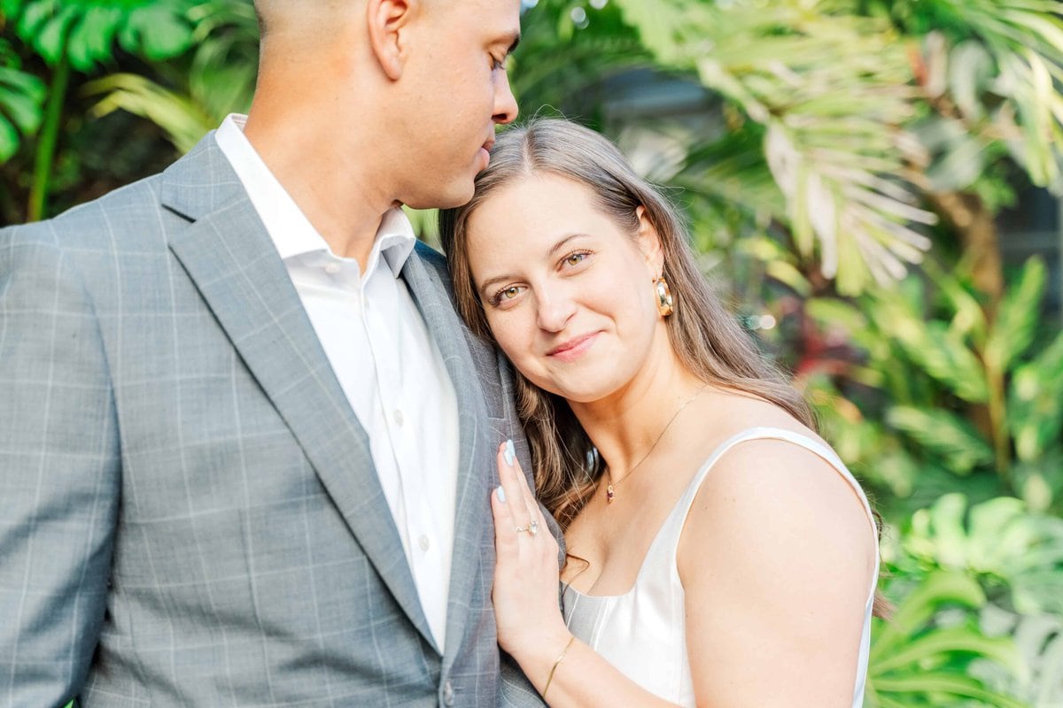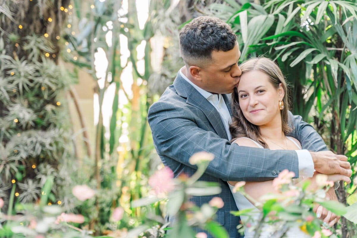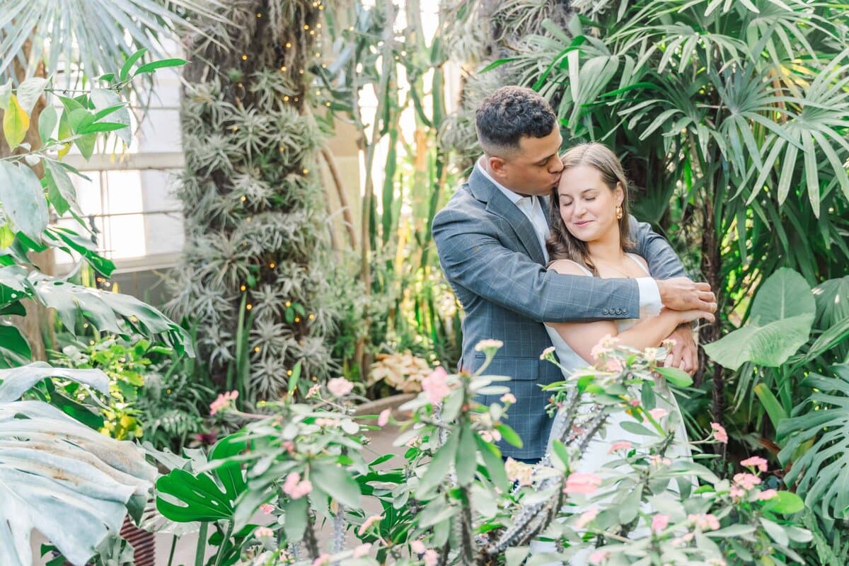 We lucked out with one of those rare, sunny winter days in Charlotte NC. The light was soft, the air was warm, and the conservatory was glowing. The Orchid Conservatory is hands-down a favorite place for engagement sessions because it offers lush greenery year-round. It’s especially perfect for couples who want that fresh, garden feel without worrying about the season. The light is always so glowy in there too!