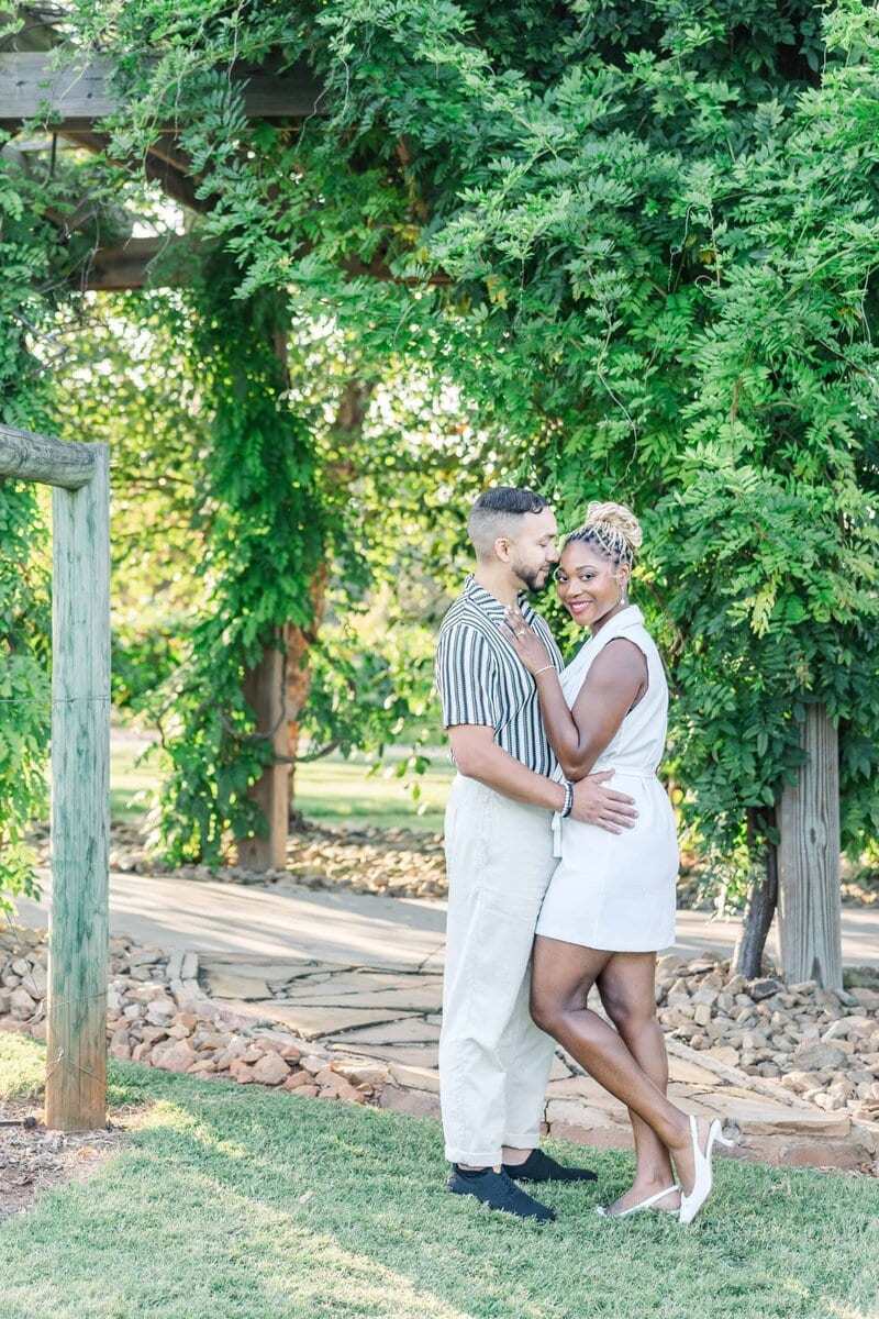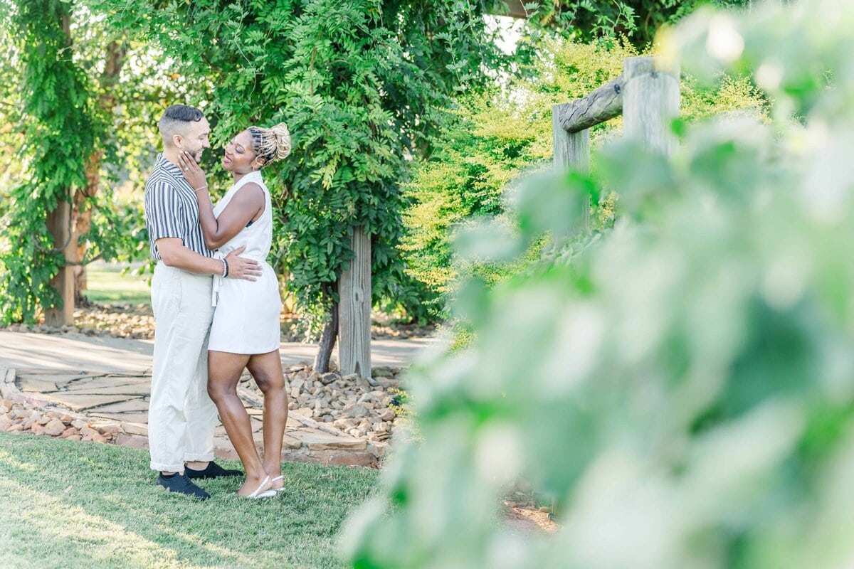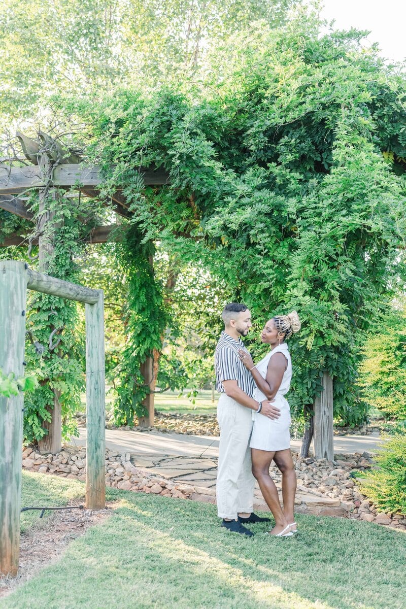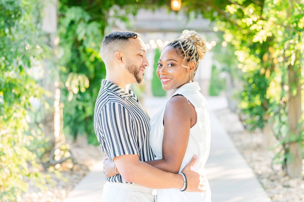 If you are planning an engagement session at spinning leaf, think soft neutrals, movement, and textures that enhance the natural beauty of the green vines and stone terrace.