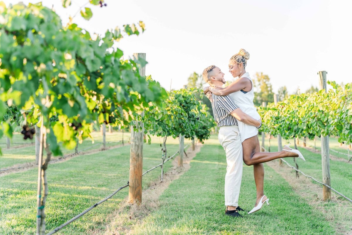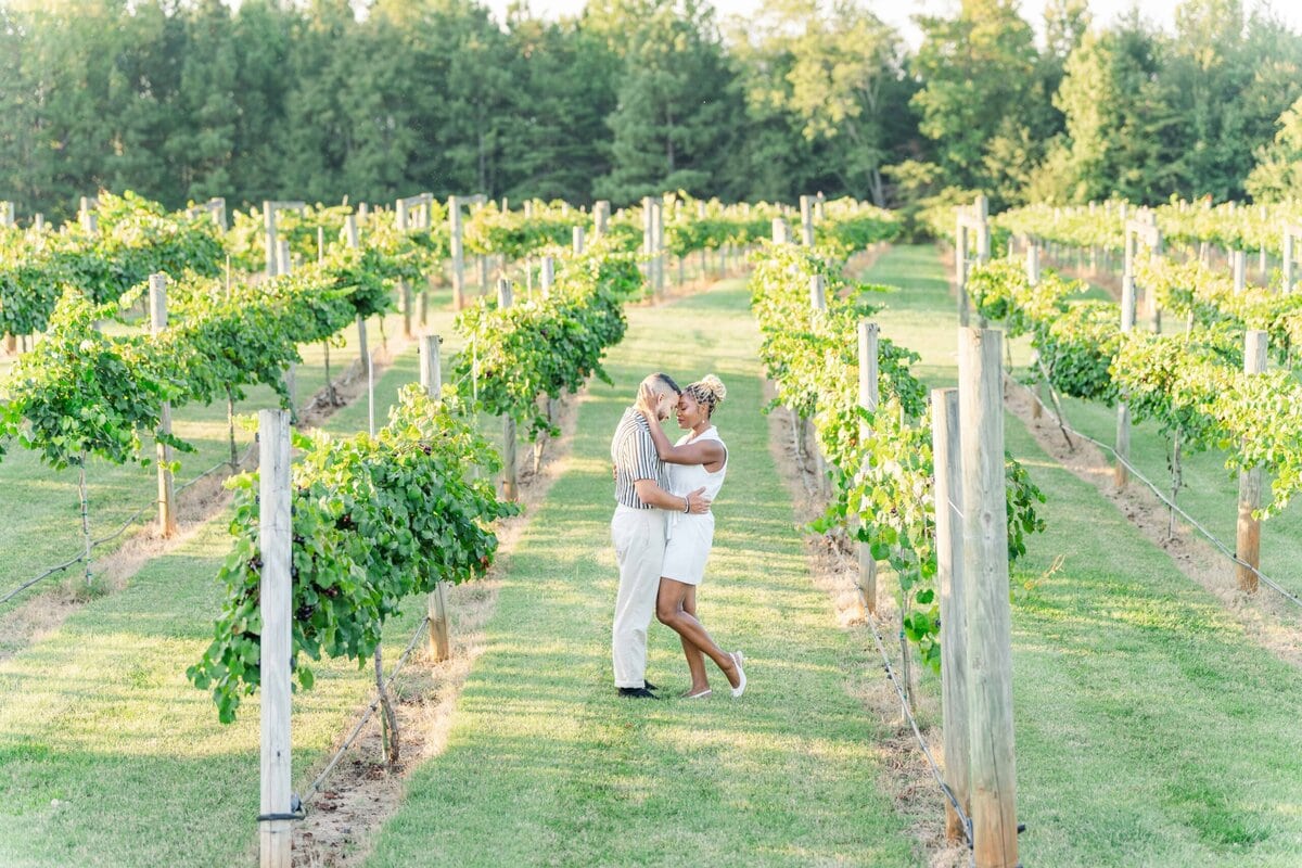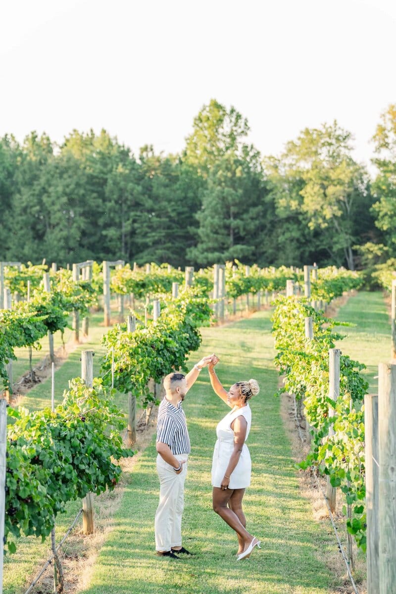 As a Spinning Leaf at Wedgewood Weddings Wedding Photographer, I always get excited when I have the chance to photograph at this stunning vineyard wedding venue in North Carolina! Gelisa and Juan’s engagement session at spinning leaf was everything I love about photographing couples in a space filled with natural beauty, vineyard views, and so much heart.