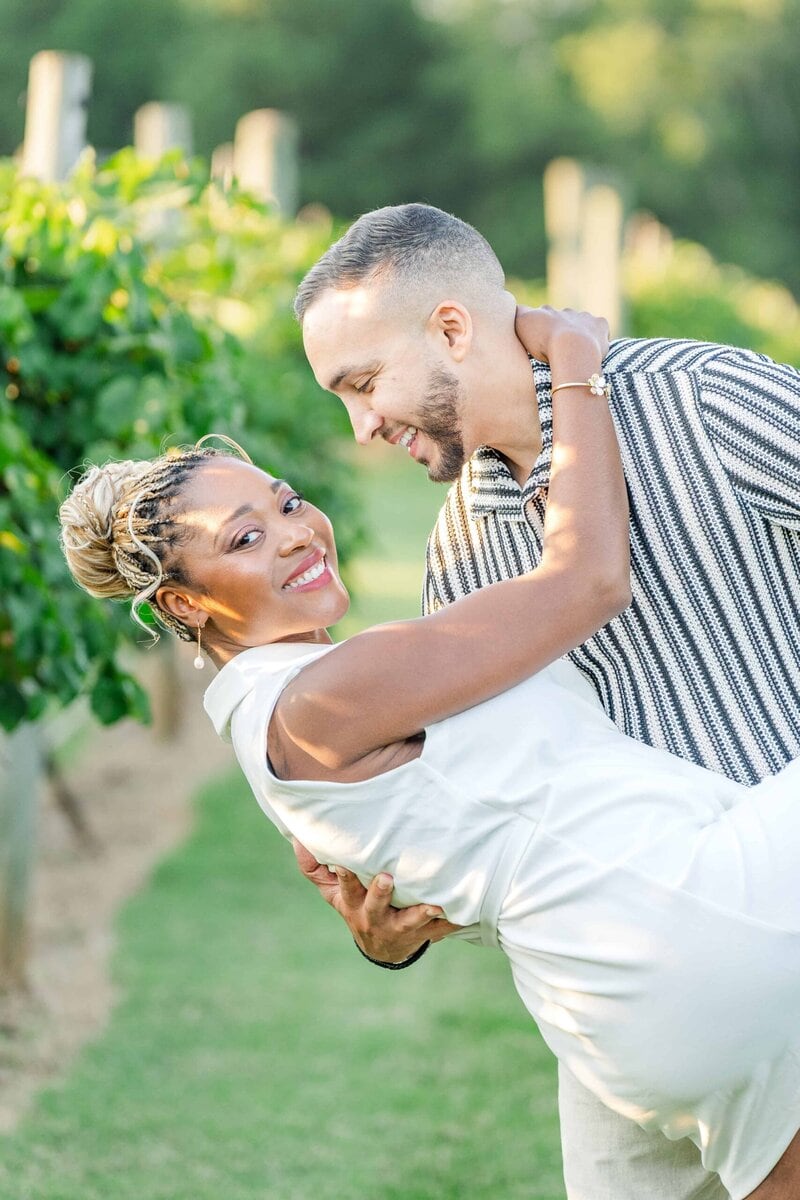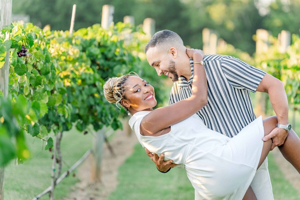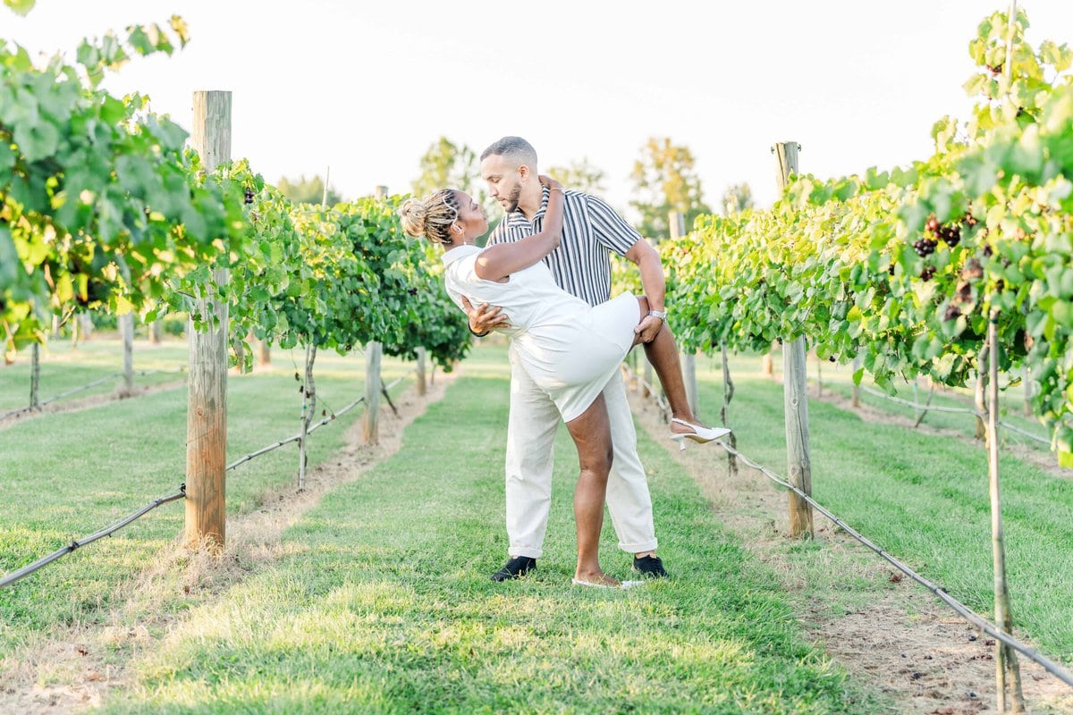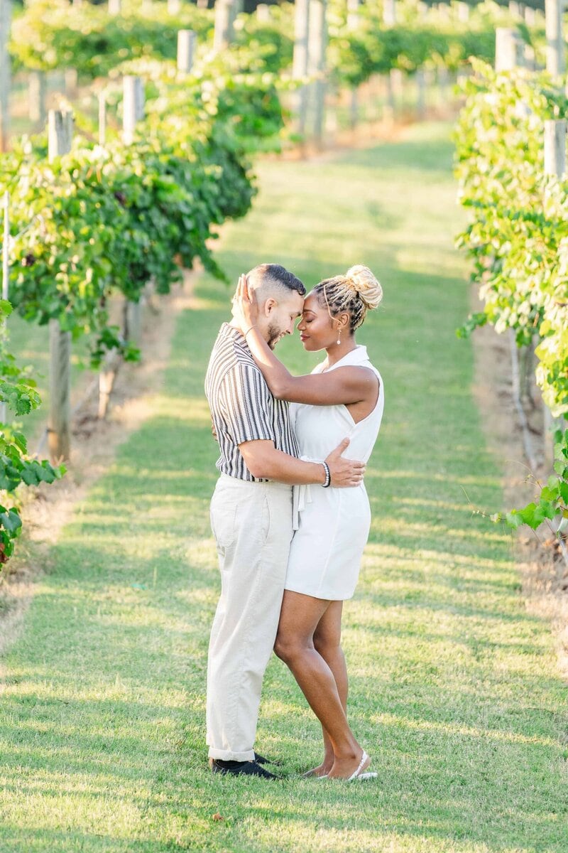 As a Spinning Leaf at Wedgewood Weddings Wedding Photographer, I always get excited when I have the chance to photograph at this stunning vineyard wedding venue in North Carolina! Gelisa and Juan’s engagement session at spinning leaf was everything I love about photographing couples in a space filled with natural beauty, vineyard views, and so much heart.