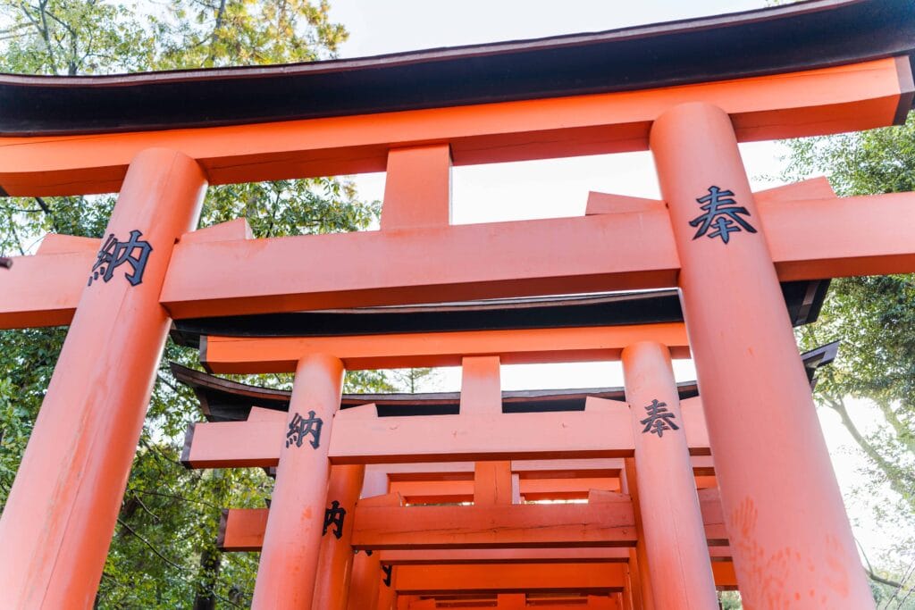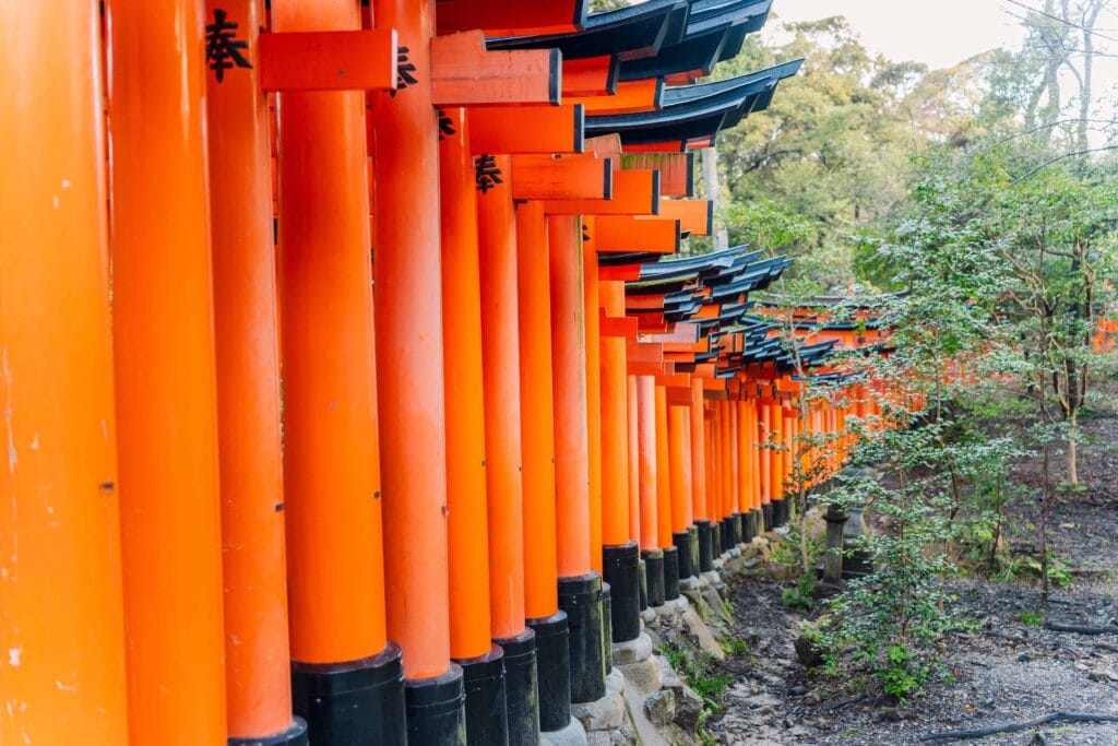 Our first stop was in Fushimi Inari Taisha in southern Kyoto. This shrine sits at the base of the mountain and a path lined with approximately 10,000 bright orange Torii gates will take you to the top of Mt. Inari. Because this is a very popular and iconic spot, we decided to wake up early in the morning so that we could get there as the sun was rising to experience the shrine with less crowds and in the gorgeous morning light. Let me tell you, Fushimi Inari Taisha did not disappoint! While we still ran into quite a lot of other visitors enjoying the shrine, it was so amazing to see it in the beautiful sunrise light and getting there early gave us the opportunity to take our time admiring everything as we made our way to the top of the mountain!