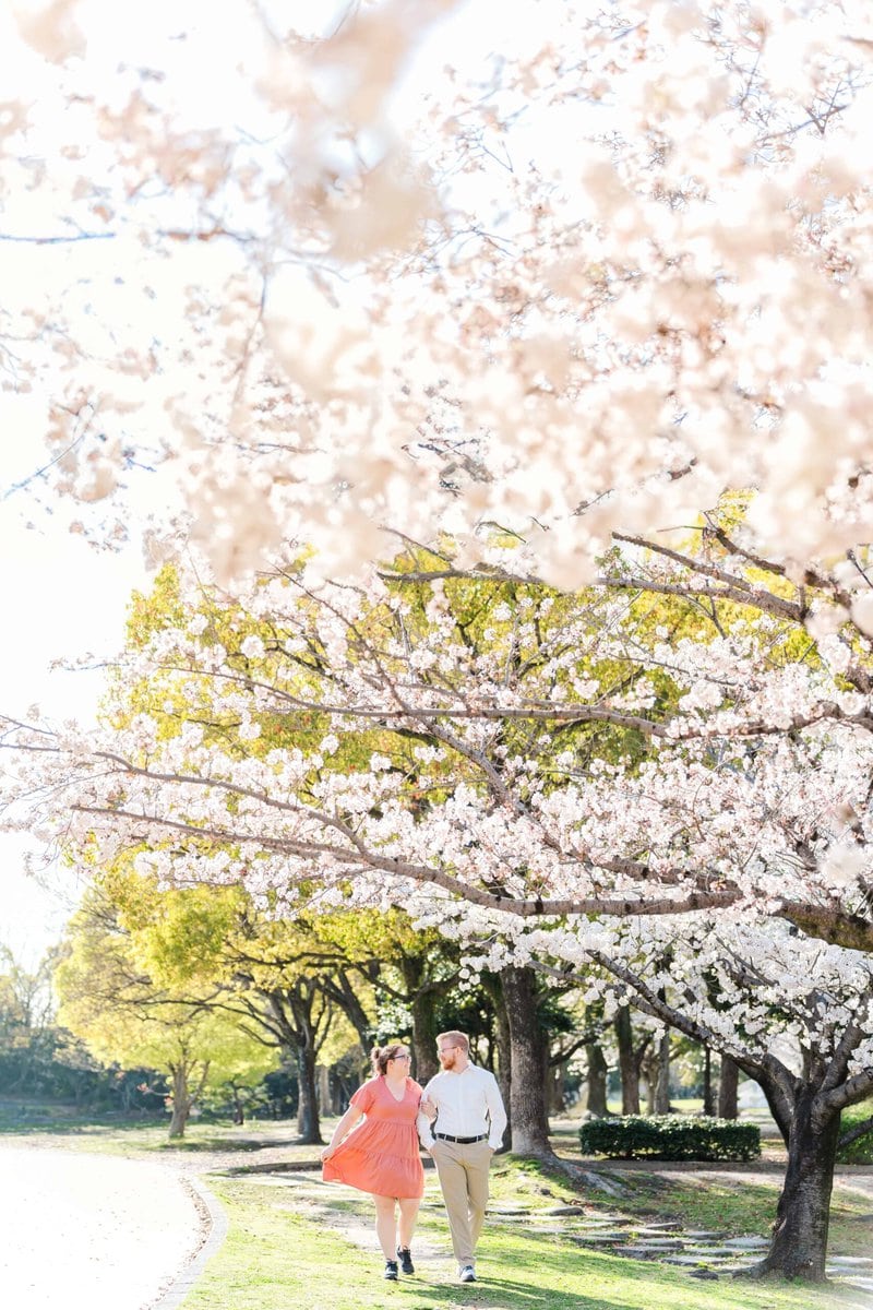 The blooms were a little late this year due to some unseasonably cold weather, so instead of catching them in Tokyo like we originally planned, we didn’t see them in all of their full-bloomed glory until our stop in the Kyushu area. They were more than worth the wait! We stopped at Kasuga Park in Fukuoka as we were on our way further down south to Hiji and captured some amazing photos of Cam and Maura among all the blooming cherry trees!